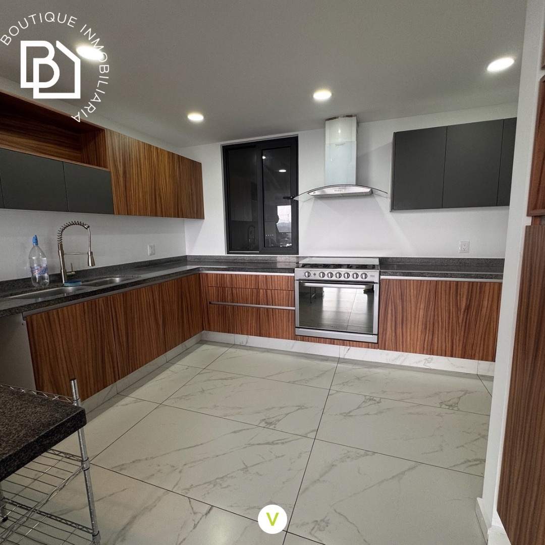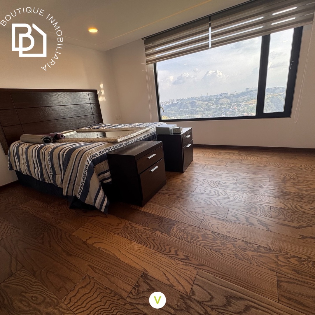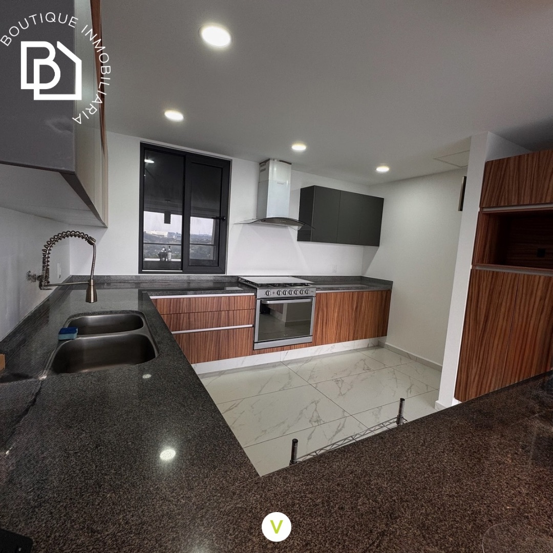 El Departamento cuenta con amplios espacios en sala y comedor, terraza con excelente vista, cocina integral, amplia sala de tv, ½ baño de visitas, 3 recámaras con baño completo, la recámara principal con walking closet, cuarto de lavado, estacionamiento para 2 autos y bodega amplia en zona de estacionamiento.