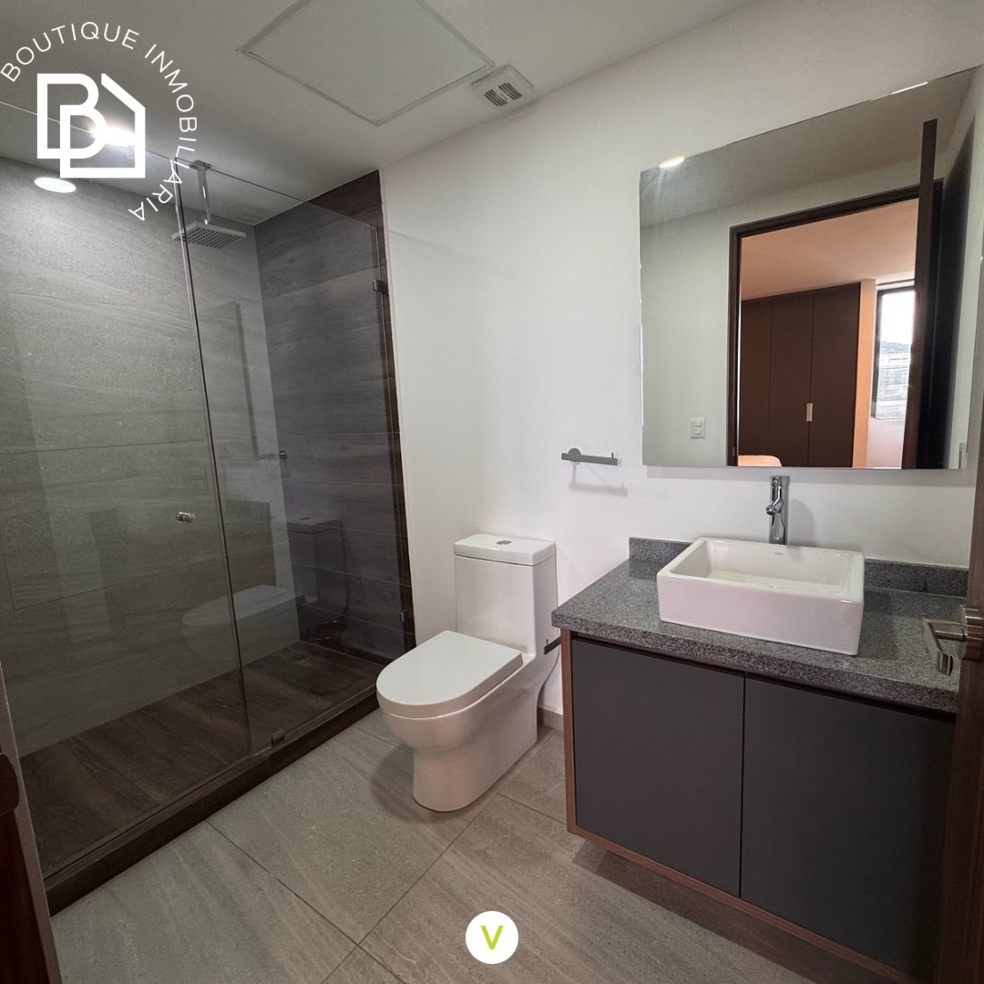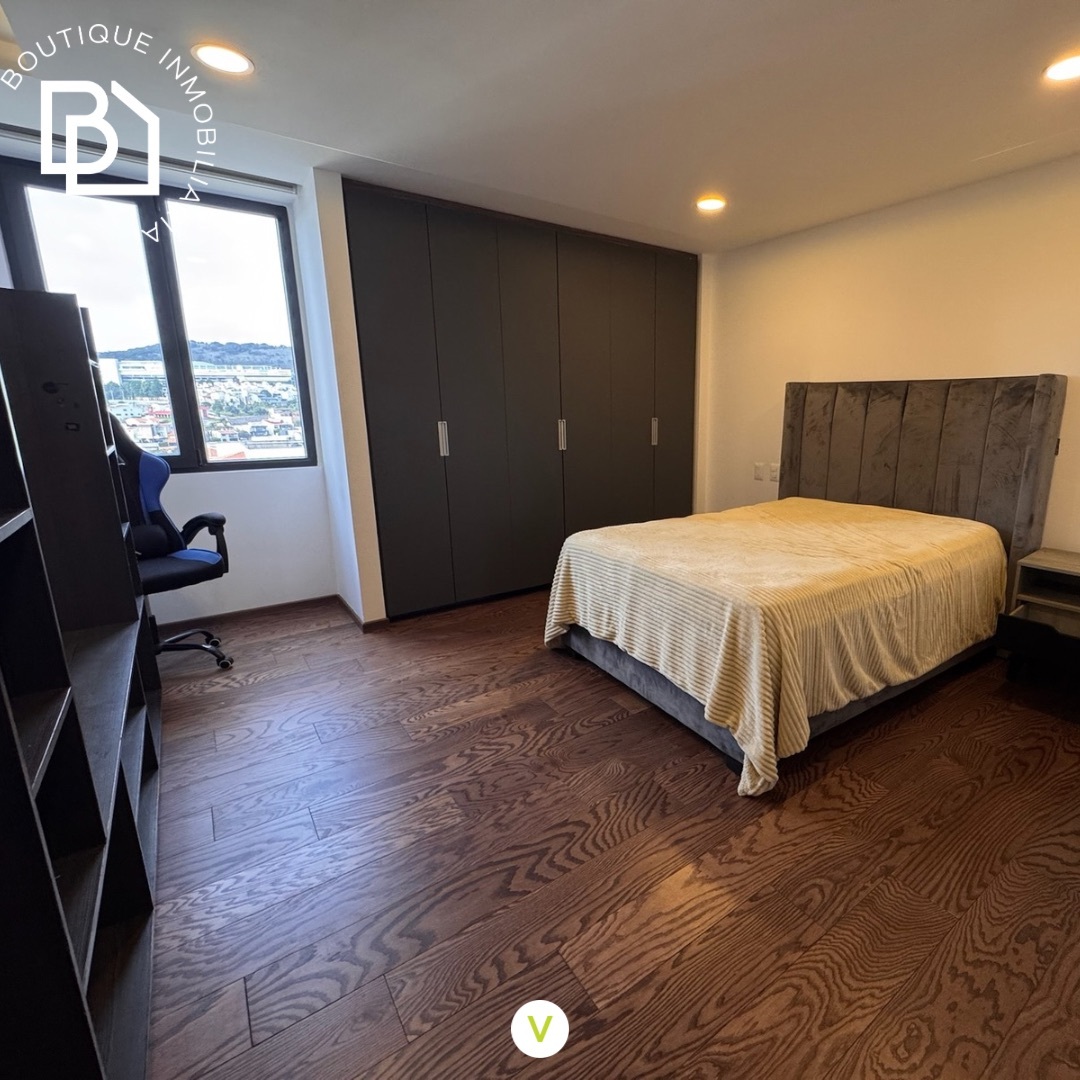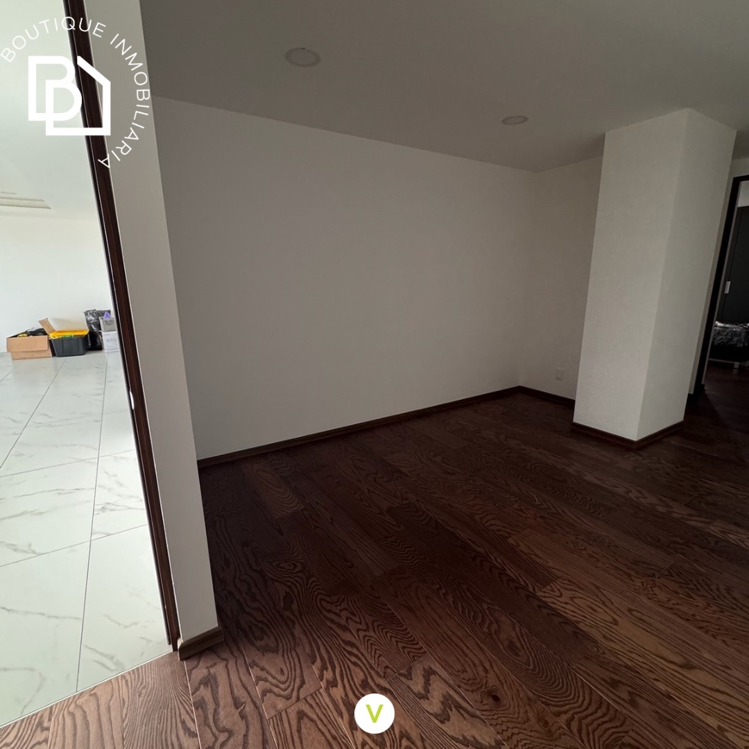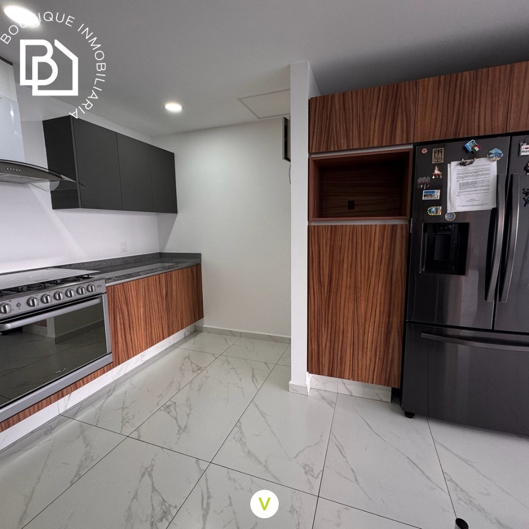 El Departamento cuenta con amplios espacios en sala y comedor, terraza con excelente vista, cocina integral, amplia sala de tv, ½ baño de visitas, 3 recámaras con baño completo, la recámara principal con walking closet, cuarto de lavado, estacionamiento para 2 autos y bodega amplia en zona de estacionamiento.