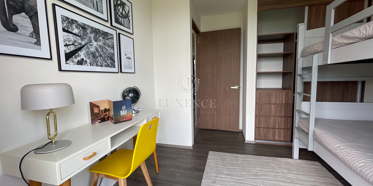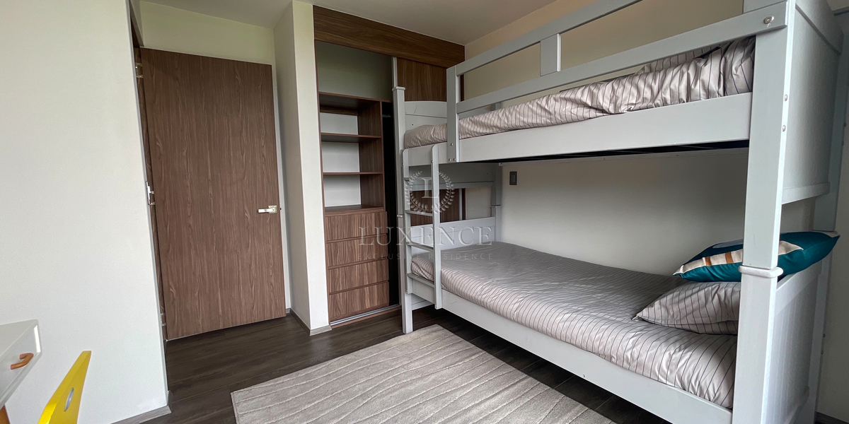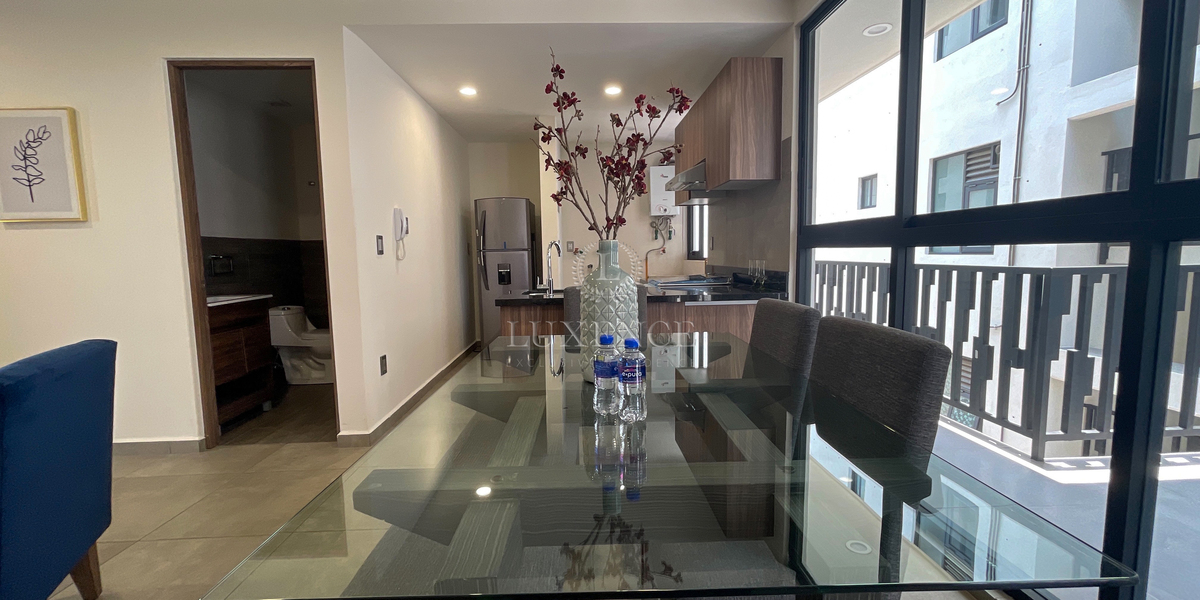 Discover an exclusive brand new apartment that redefines elegance and comfort. Its spacious areas integrate the living room and dining room with a sophisticated design, complemented by a high-quality integrated kitchen and an independent laundry area. The master bedroom stands out for its private bathroom and walk-in closet, accompanied by a secondary bedroom with a closet that offers versatility and comfort. Additionally, it has a service room.Descubre un exclusivo departamento a estrenar que redefine la elegancia y el confort. Sus amplios espacios integran estancia y comedor con un diseño sofisticado, complementados por una cocina integral de alta calidad y área de lavado independiente. La recámara principal destaca por su baño privado y vestidor, acompañada de una recámara secundaria con clóset que ofrece versatilidad y comodidad. Además, cuenta con cuarto de servicio.
