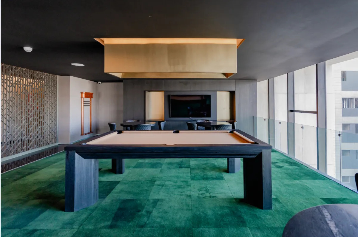 • Cocina integral equipada con parrilla eléctrica, campana, microondas y refrigerador