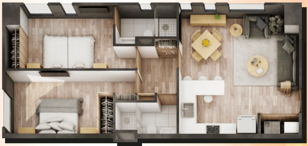 Location towards the back facade, making it very quiet, private, and free from external noise.