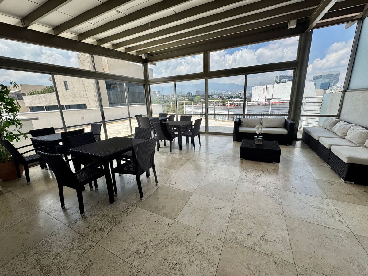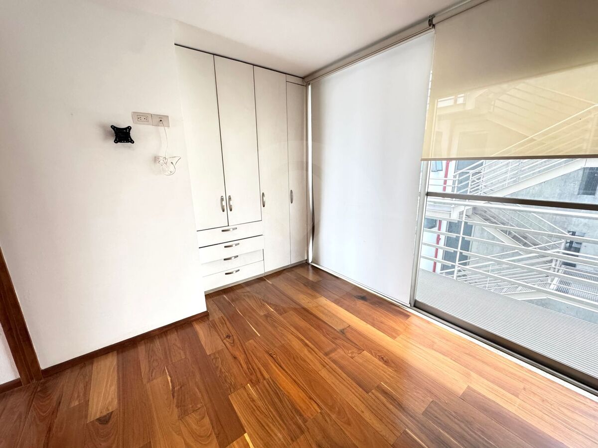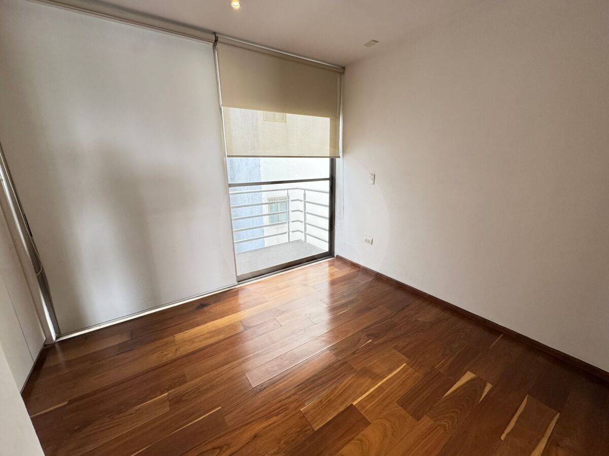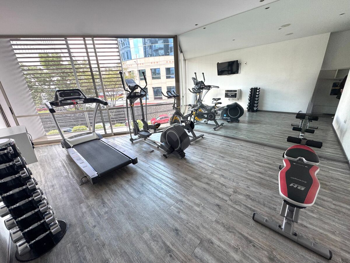 El condominio cuenta únicamente con 24 departamentos, lo que lo hace más privado y tranquilo. Entre sus amenidades ofrece roof garden con salón y terraza con vista panorámica a la ciudad, gimnasio y seguridad 24/7.