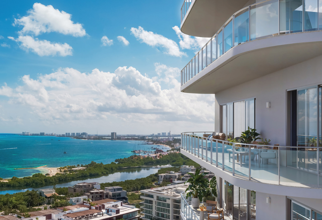 Departamento en venta en Cancún con 212.72 m2 de construcción, en desarrollo boutique con 92 residencias de lujo con vista panorámica al mar Caribe y próximas al mar.