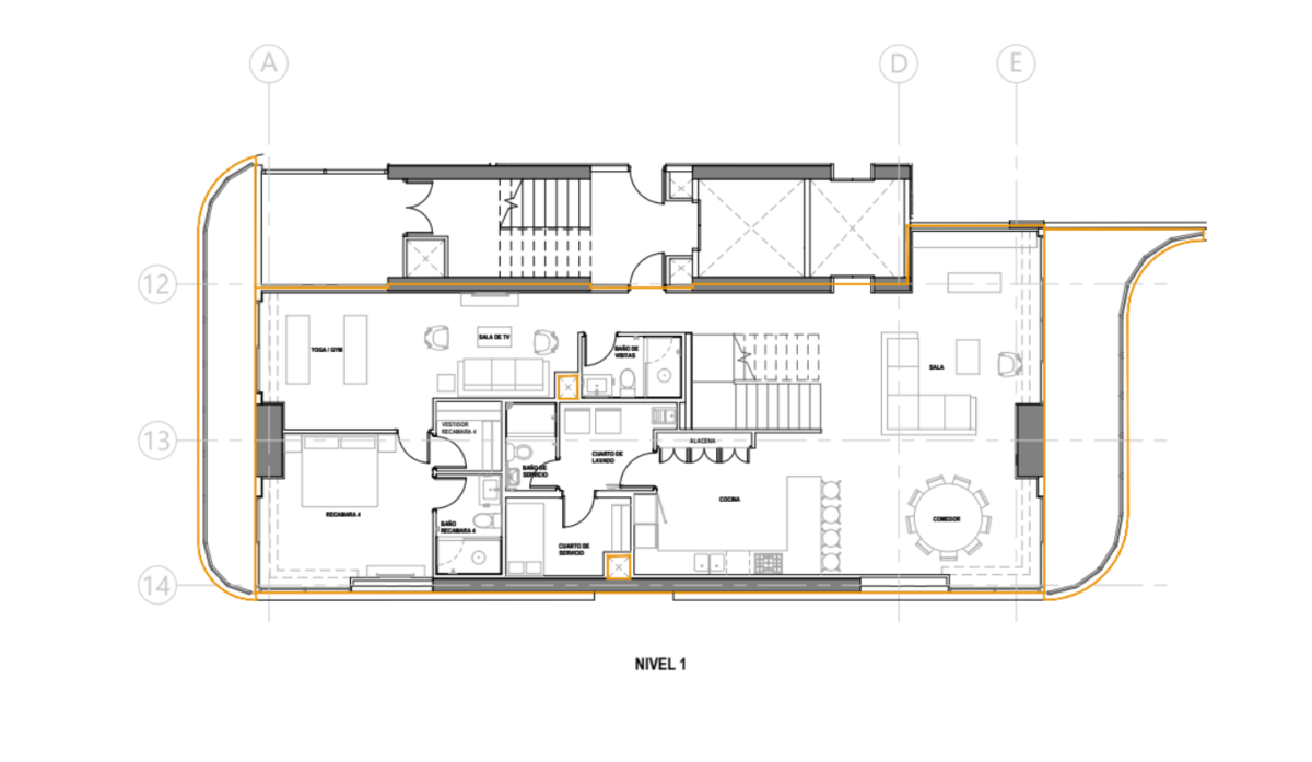 Departamento cuenta con una altura libre de 2.65 metros en recámaras y áreas comunes, dos niveles y rooftop, estudio, cuarto de servicio, baño de visitas, cuarto de lavado, cocina, sala, comedor, walk-in closet, sala de TV, 2 terrazas, bodega y jacuzzi.