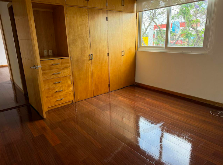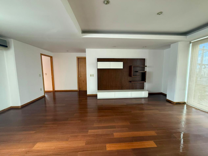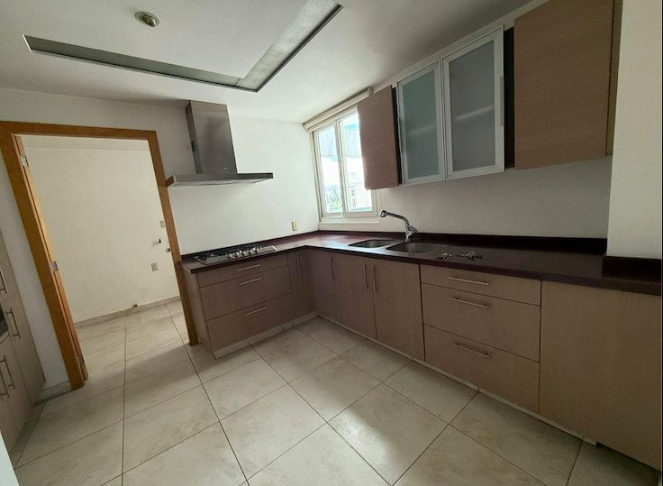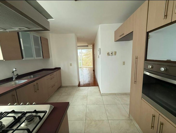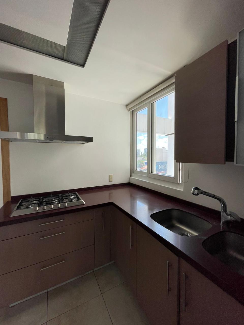 El departamento se encuentra en piso 3, el elevador llega directo al departamento, la torre es un conjunto único, cuenta el departamento con 122 m2, dos baños completos, dos recamaras la principal con vestidor, la secundaria con closet, medio baño de visitas, sala y comedor muy espaciosos e iluminados, cuenta con mini splits en todo en area social y recamara principal, el área de lavado es muy grande y ventilada, la cocina esta equipada con electrodomésticos Mabe, campana, en excelente estado de conservación.