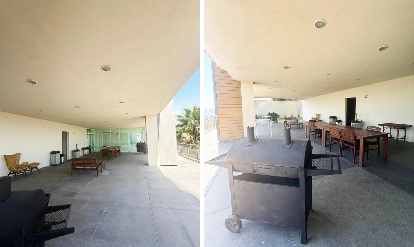 Amenidades: Terraza con asadores y jardín, salón de eventos.