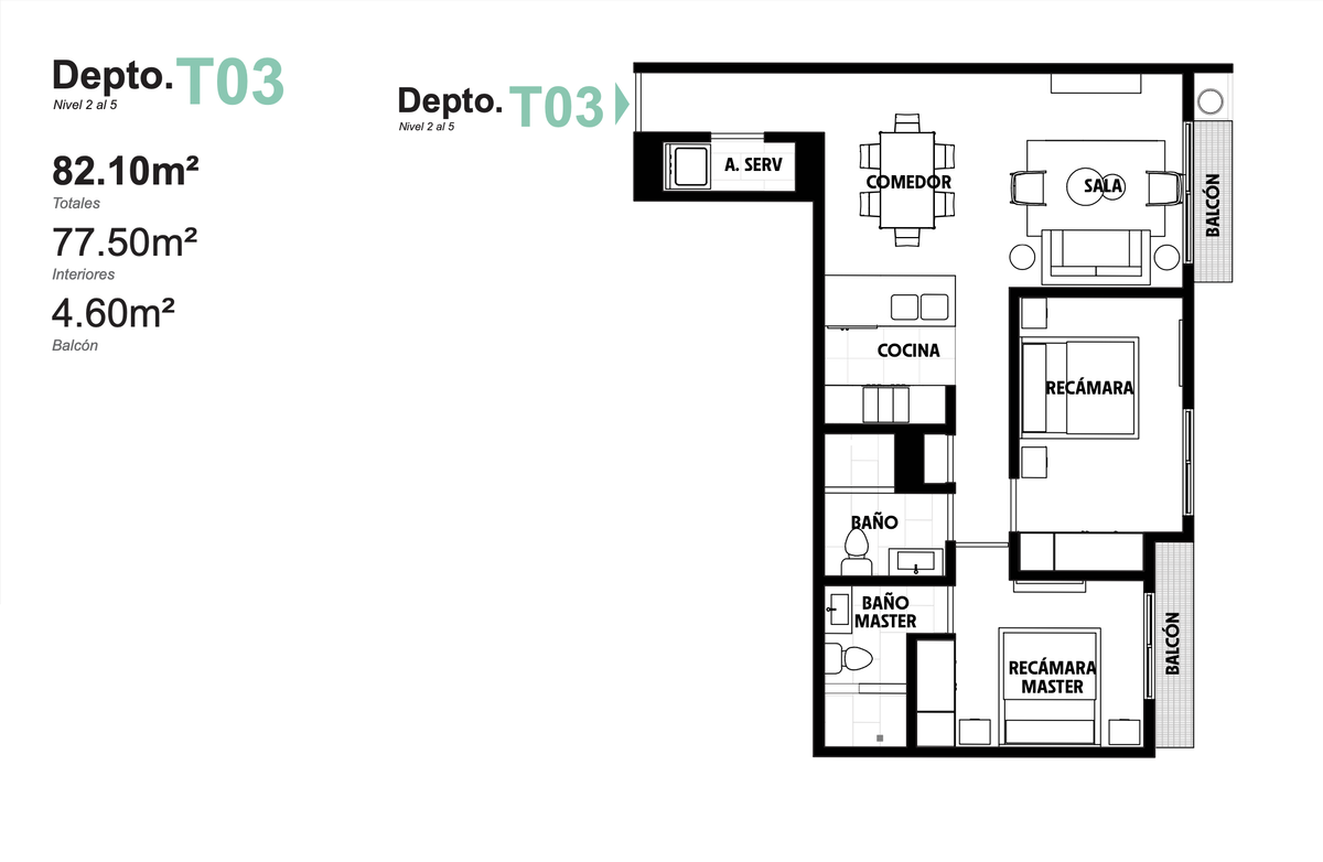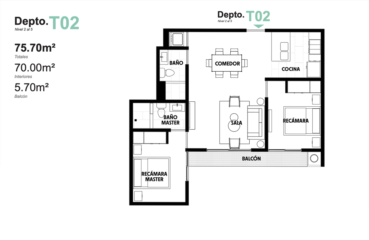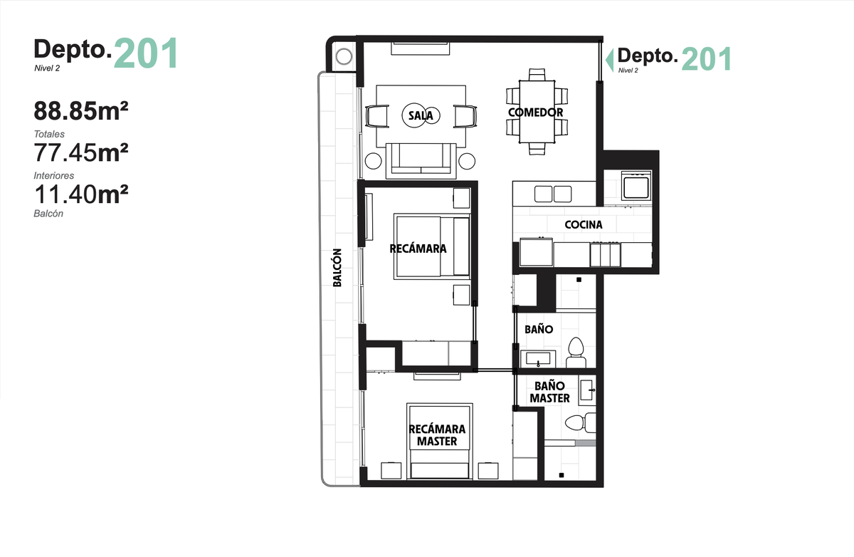 - 2 recámaras | 2 baños completos | Balcón en unidades selaccionadas