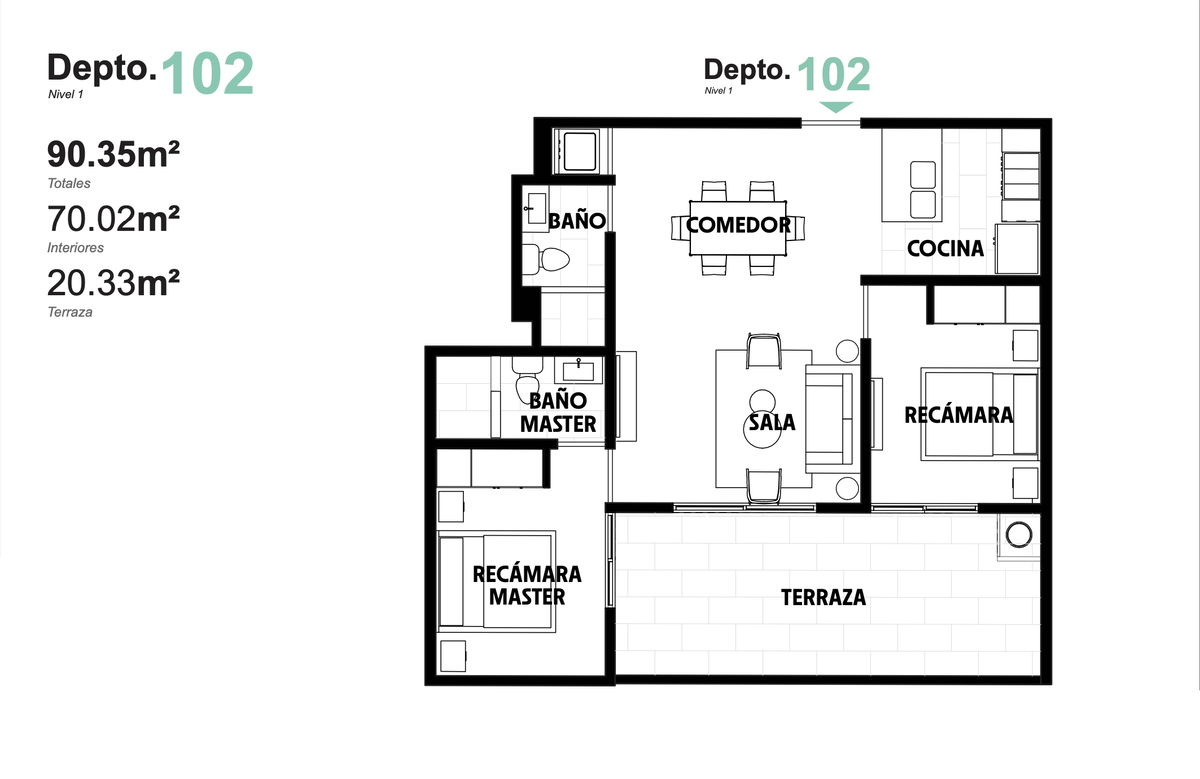 - Superficies desde 70.10 m² hasta 90.35 m²