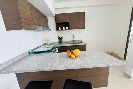 Cuenta con una iluminada estancia por sus ventanales de piso a techo, muy buen espacio de sala, comedor y cantina, cocina integral con área para lavadora/secadora, 3 recámaras, 2 baños completos, cuarto de servicio en la azotea con jaula de tendido y lavadero. Un cajón de estacionamiento movible.
