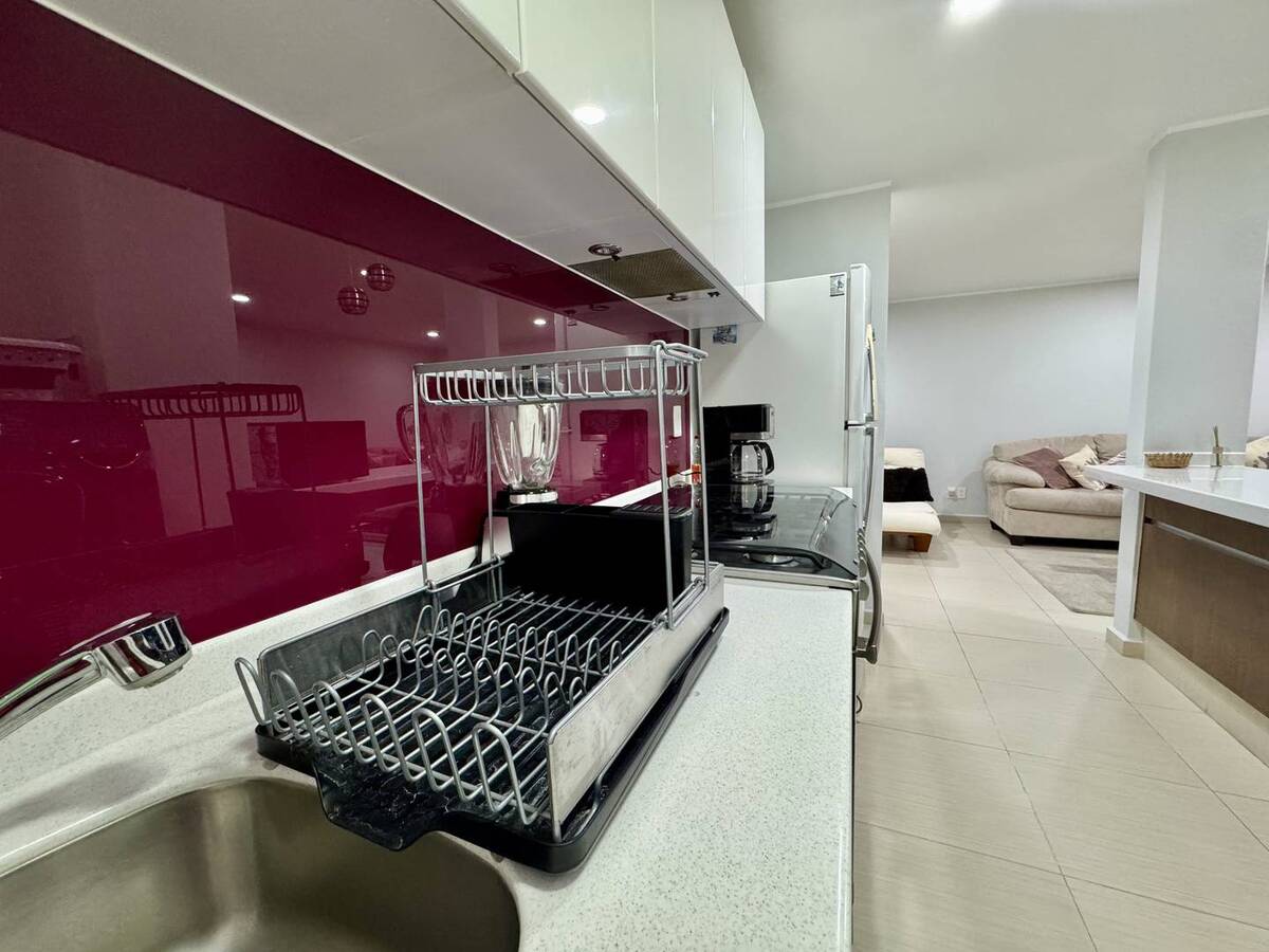 The apartment is located on the second floor, is interior, its view overlooks the central courtyard of the condominium, and it has an elevator. Upon entering the apartment, we will find the social area with an open kitchen, which makes the space feel much larger.