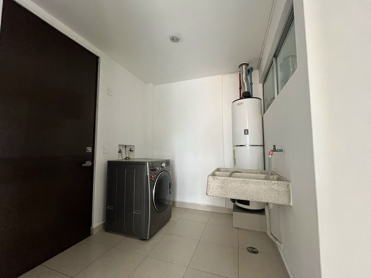 Exterior corner apartment. This apartment has double access; entering through the main door, you are welcomed by a foyer and a spacious living room, open kitchen, pantry. Entering through the secondary access, you will find the laundry room and service or ironing room with an integrated bathroom.