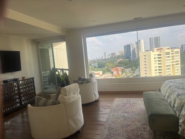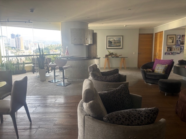 Stunning apartment on the 19th floor of a maximum luxury and elegance development within Lomas Country Club. They have spectacular views and spaces. 430m2, 3 bedrooms each with bathroom and dressing room, guest half bath, integral kitchen, spacious living-dining room, TV room, service room. The building has a lobby, reception, high security, gym with bathrooms, gardens, party room, 1 storage room per apartment, visitor parking, 3 parking spaces per apartment, driver lounge, 2 elevators.Estupendo departamento en el piso 19 de un desarrollo de máximo lujo y elegancia dentro de Lomas Country Club. Cuentan con vista y espacios espectaculares. 430m2, 3 recámaras cada una con baño y vestidor, medio baño de visitas, cocina integral, amplia sala comedor, cuarto de TV, cuarto de servicio El edificio cuenta c Lobby, Recepción, Alta Seguridad, Gimnasio con baños, jardines, Salón de fiestas, 1 Bodega por departamento, Estacionamiento de visitas, 3 cajones de estacionamiento por departamento, sala para choferes, 2 elevadores.