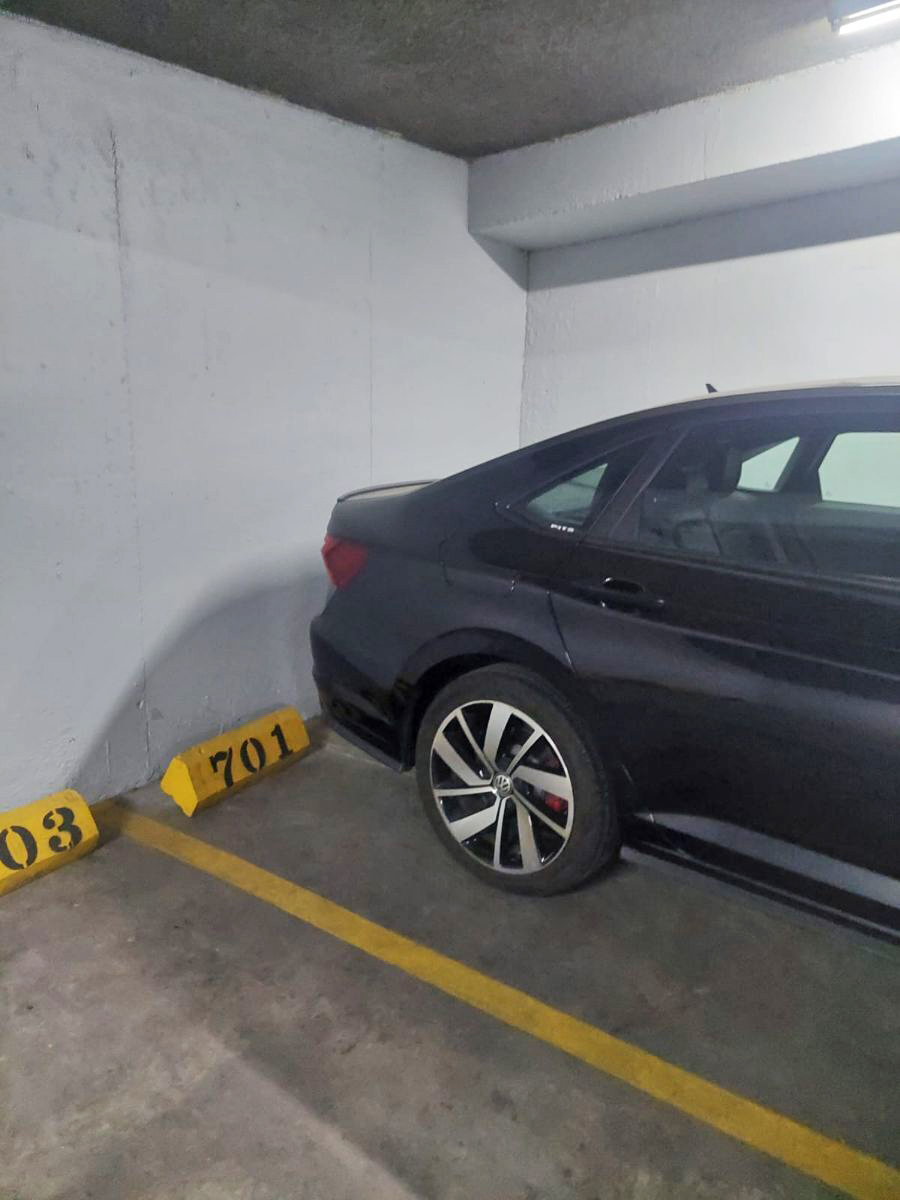 It has two fixed and covered parking spaces.