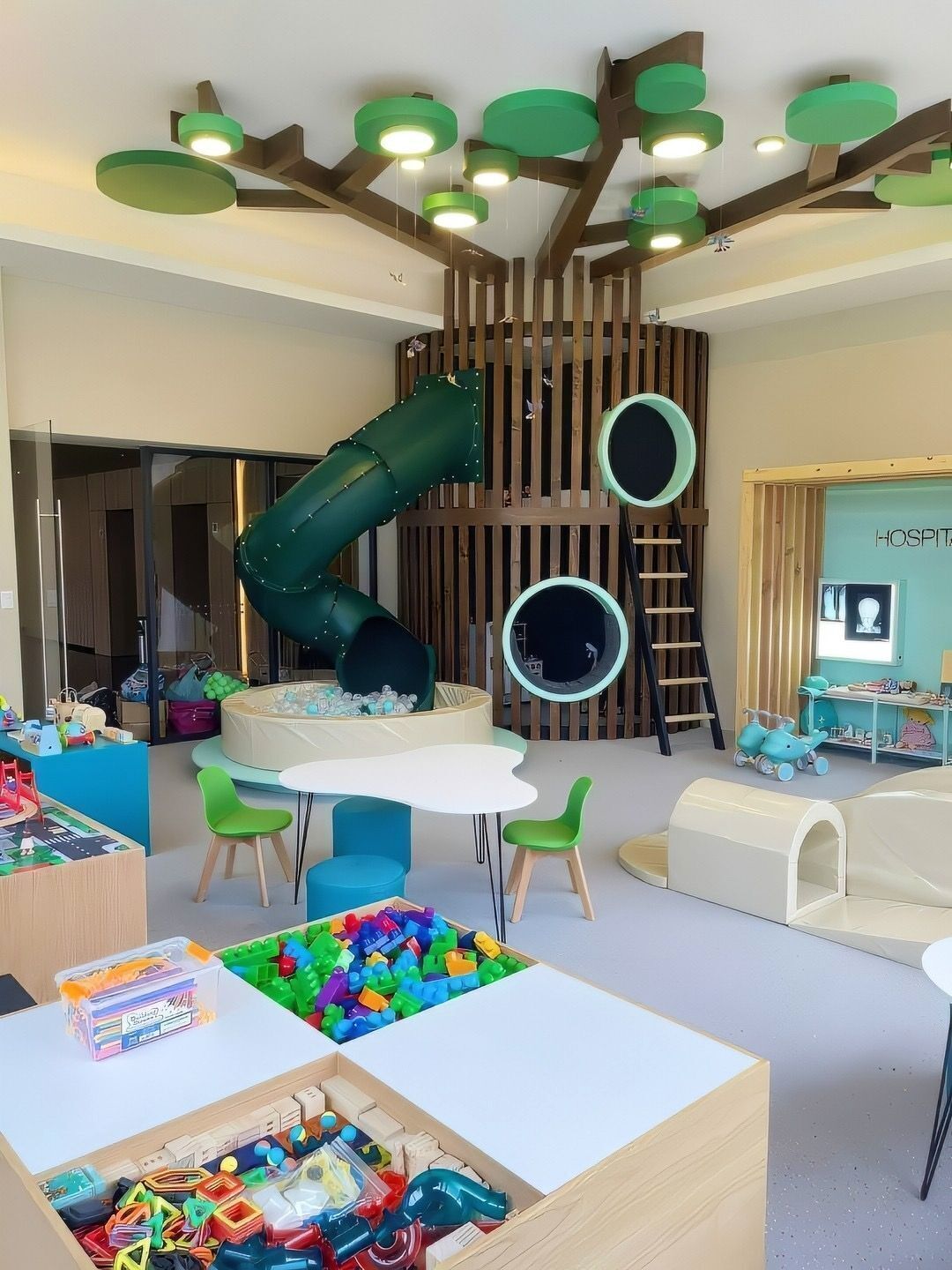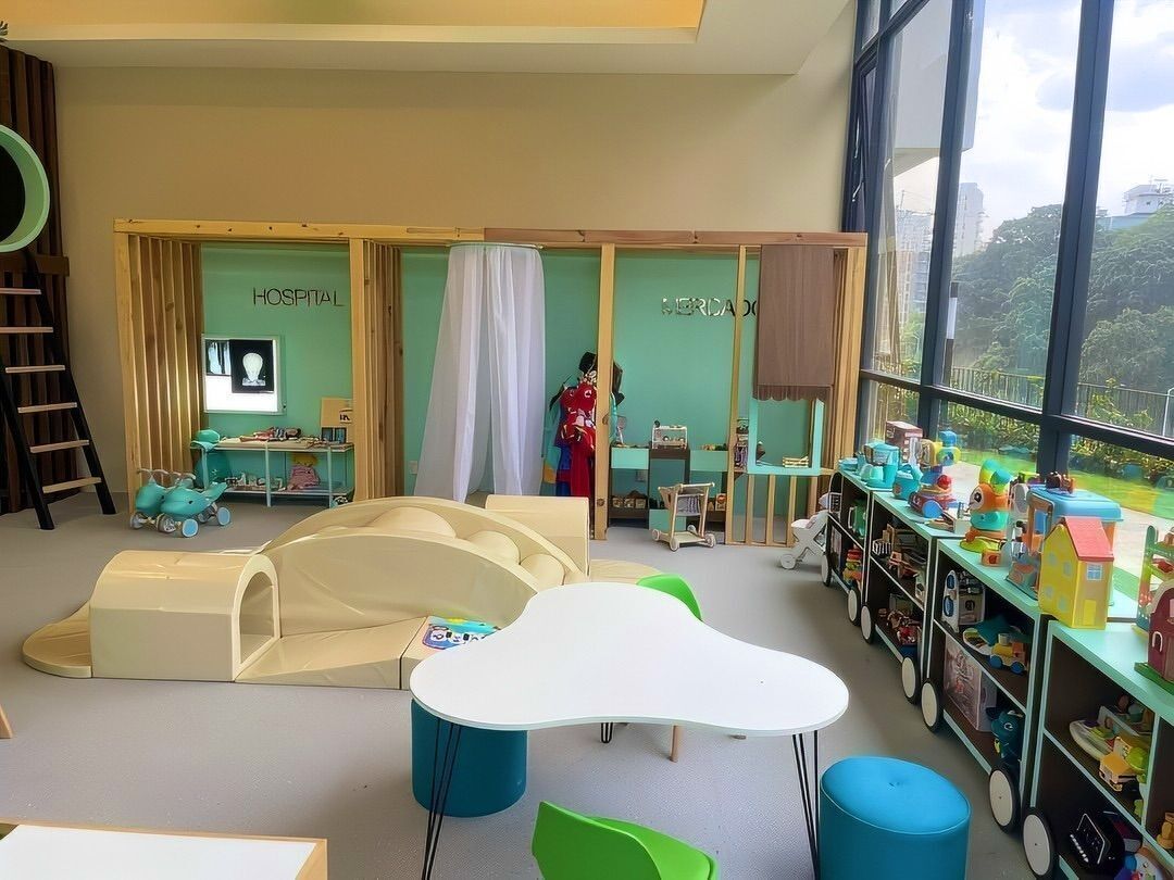 Cuenta con Amenidades como, salas de coworking, departamentos completos sin recamaras para poder hacer tus reuniones, biblioteca de objetos, como poder solicitar un taladro o escalera, etc.