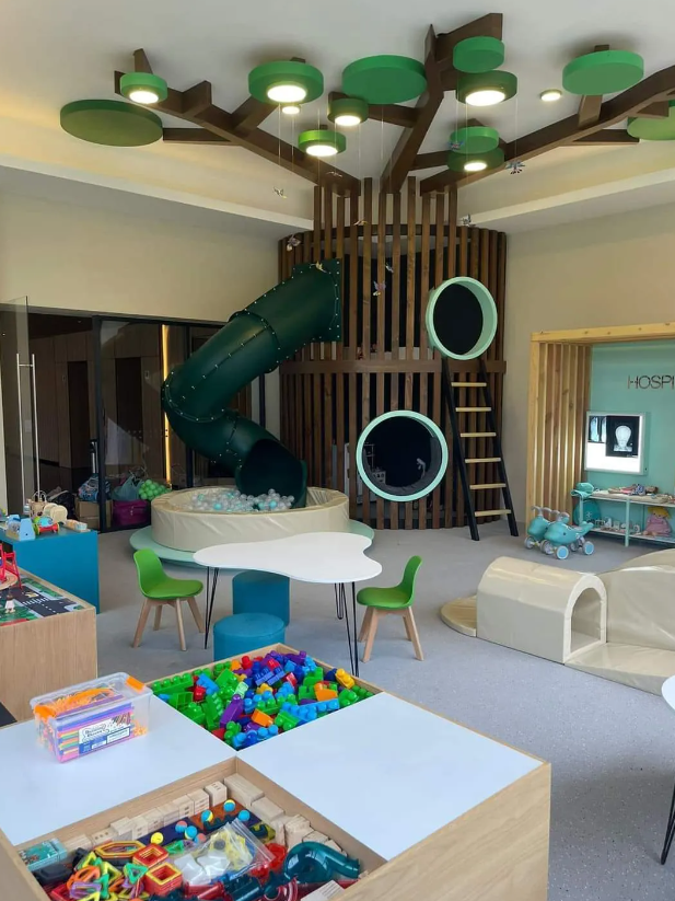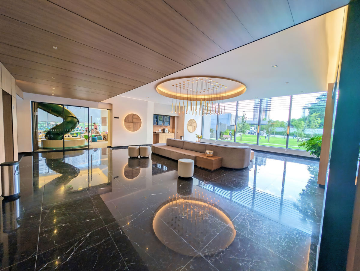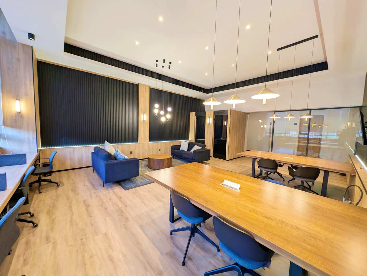Cuenta con Amenidades como, salas de coworking, departamentos completos sin recamaras para poder hacer tus reuniones, biblioteca de objetos, como poder solicitar un taladro o escalera, etc.