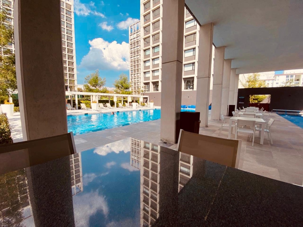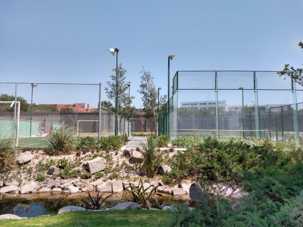 El residencial cuenta con más de 21 amenidades, entre ellas alberca con carril de nado, gimnasio, spa, canchas de pádel y tenis, jardines, salón de eventos, cine, asadores y seguridad 24/7.
