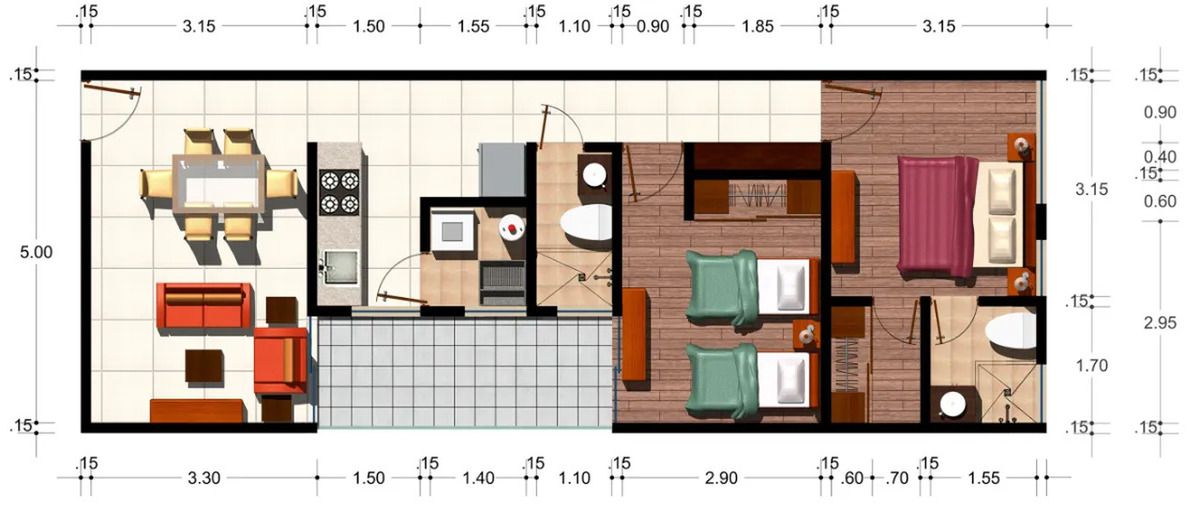 NOM-247El departamento consta de dos recámaras, la principal con baño y vestidor, un baño para visitas sala comedor, cocina, cuarto de lavado y dos lugares de estacionamiento.