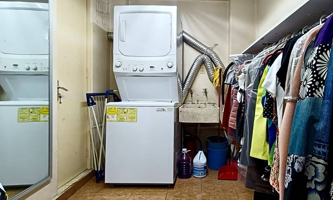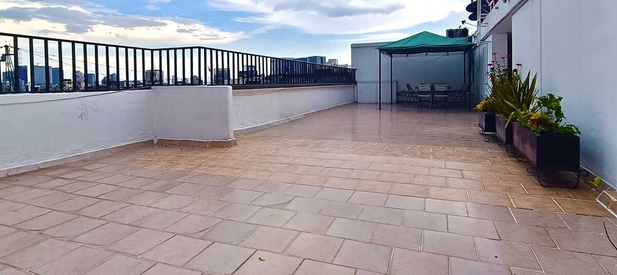 It features a private elevator, three spacious bedrooms (the master with a walk-in closet and bathroom), a fully equipped kitchen with a breakfast area, a living room or family room, a service room with a bathroom, a private storage room, and one parking space (with the option to rent another). The building has a common roof garden equipped for outdoor gatherings.