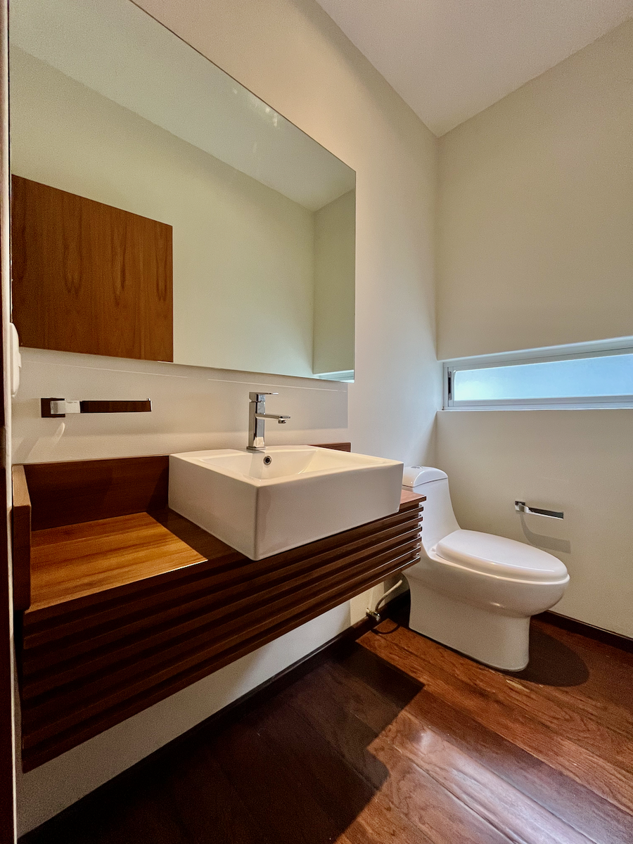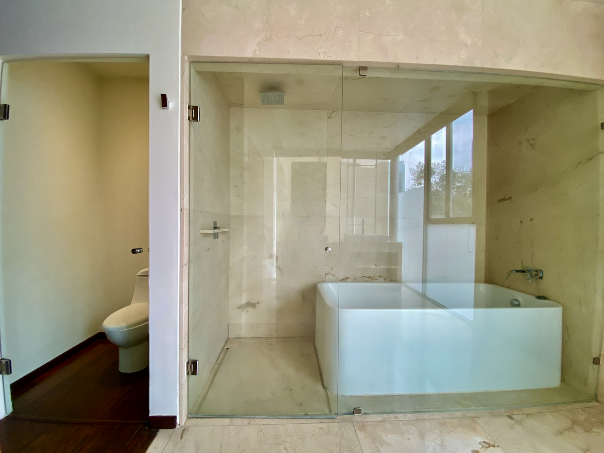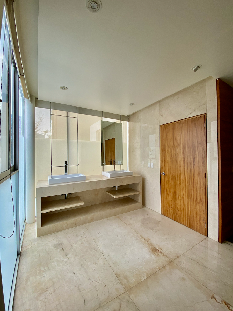 Cuenta con un family room espacioso y un closet de blancos de buen tamaño. Las dos recámaras secundarias tienen walk-in closet, baño completo y acceso a una terraza privada. En el nivel superior, la recámara principal incluye dos walk-in closets, un baño completo con tina, y un cuarto adicional que puede funcionar como gimnasio con área de vapor.