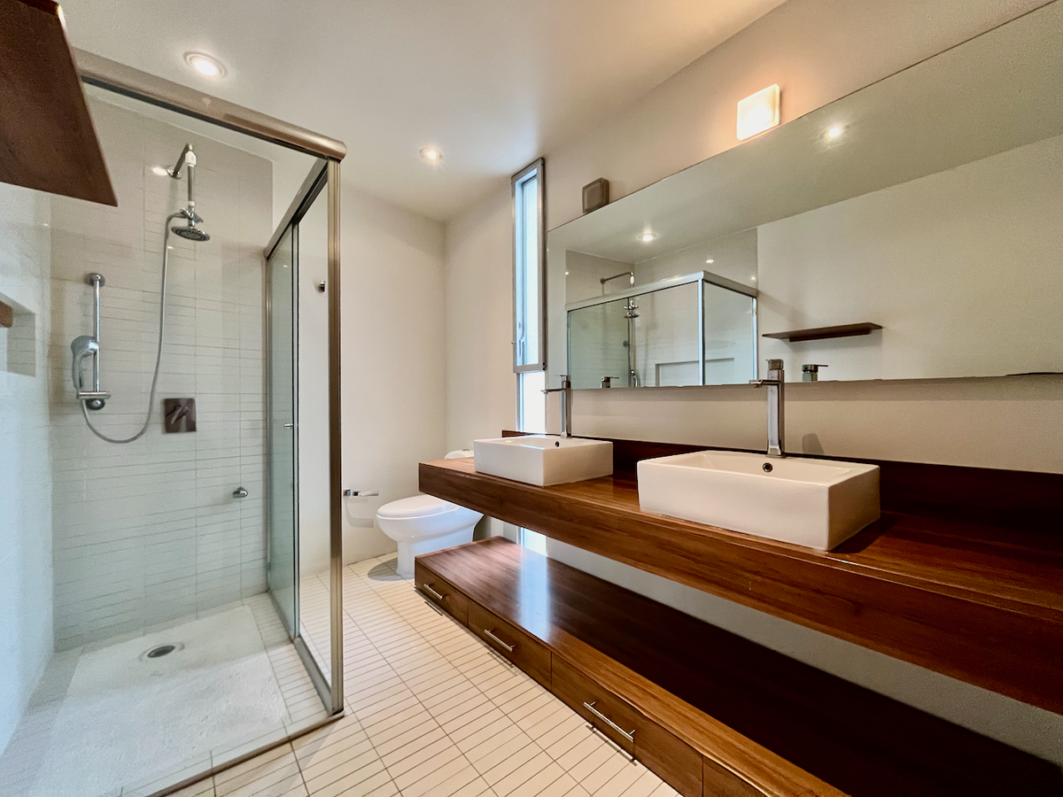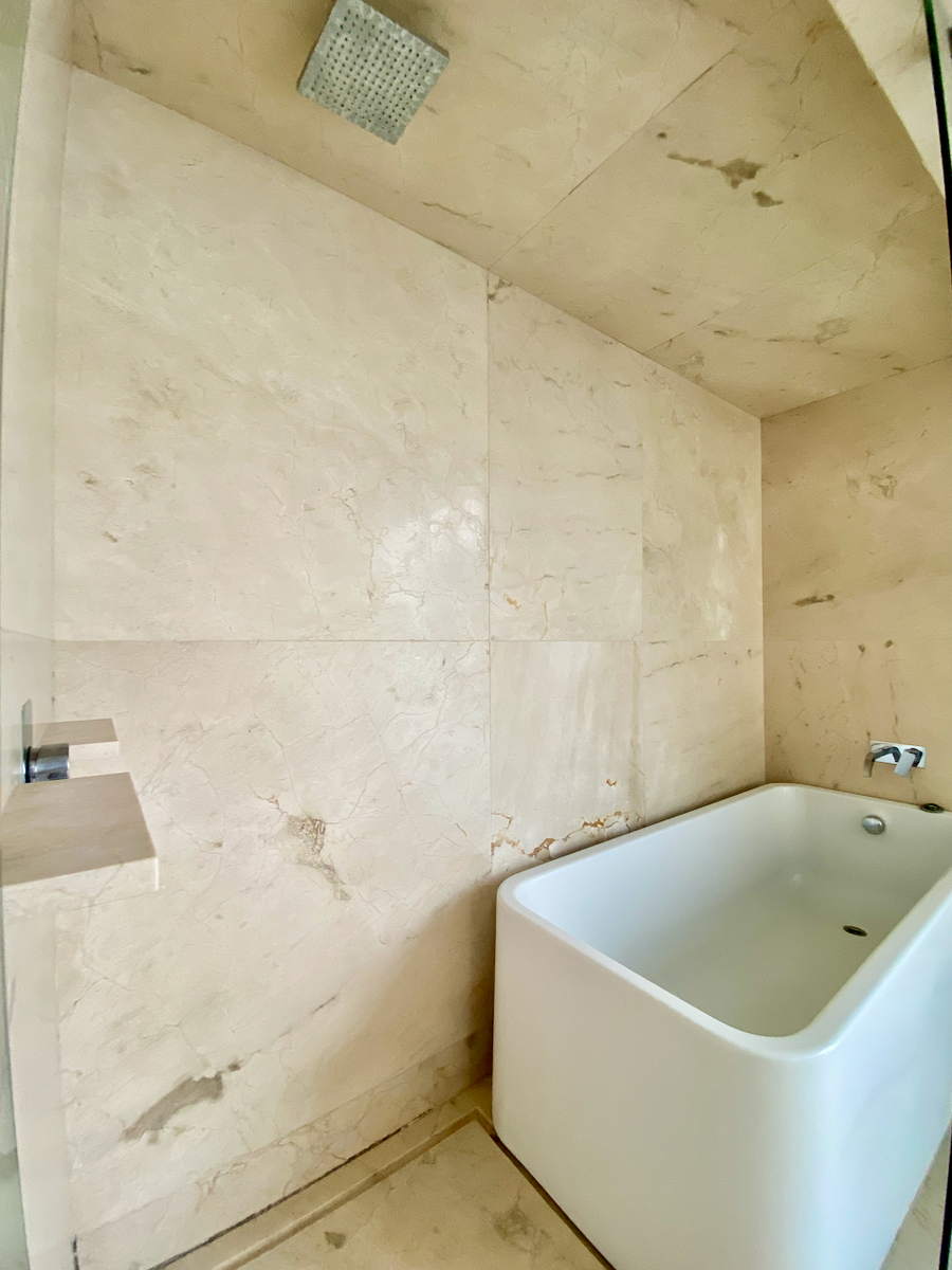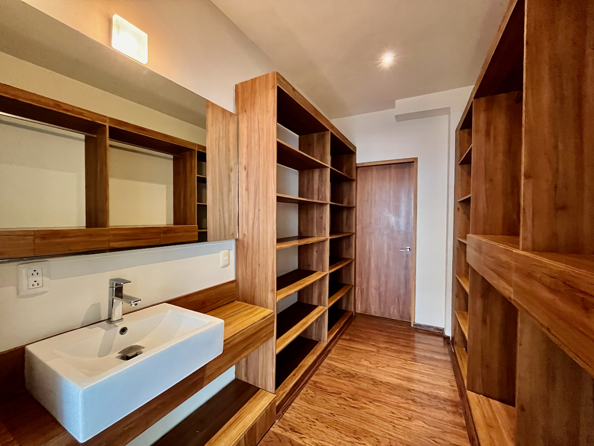 Cuenta con un family room espacioso y un closet de blancos de buen tamaño. Las dos recámaras secundarias tienen walk-in closet, baño completo y acceso a una terraza privada. En el nivel superior, la recámara principal incluye dos walk-in closets, un baño completo con tina, y un cuarto adicional que puede funcionar como gimnasio con área de vapor.