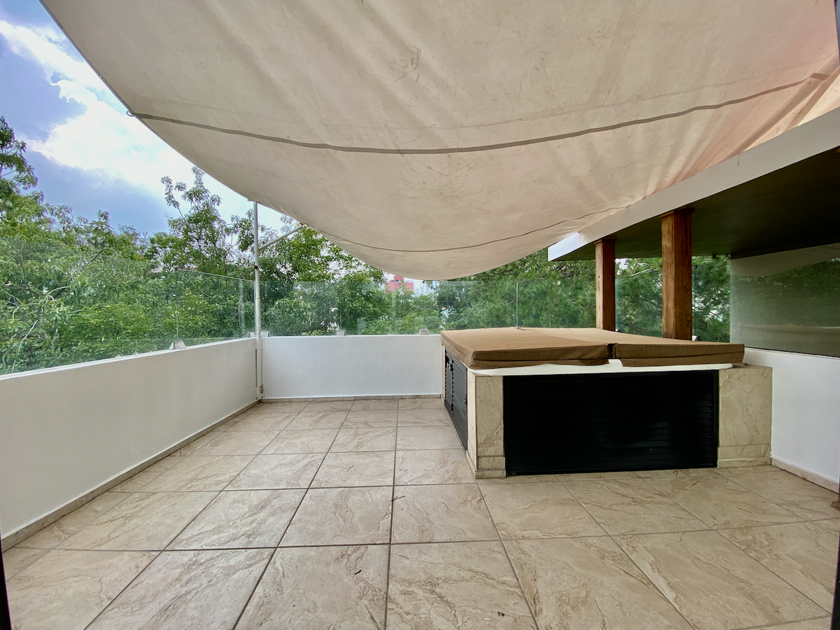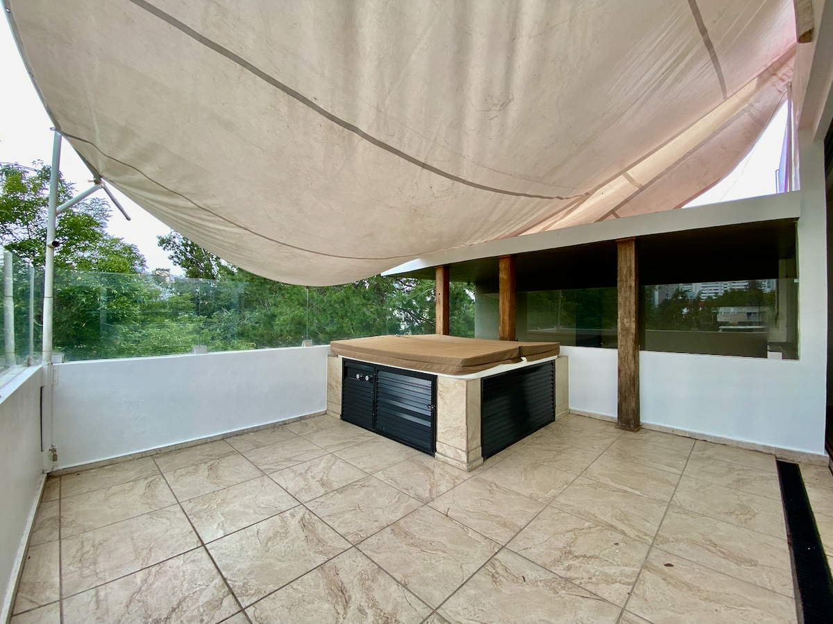 La propiedad se complementa con una amplia área social con asador, baño y jacuzzi, así como 3 lugares de estacionamiento, cuarto de lavado, cuarto de servicio y una bodega. Seguridad 24 horas garantiza tranquilidad."