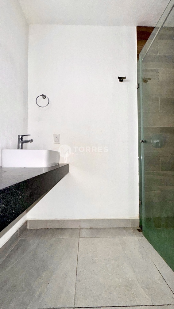 La cocina destaca por su amplitud, cubiertas de granito y gran capacidad de almacenamiento. Dispone de dos habitaciones, la principal con baño completo, y un segundo baño completo para visitas o recámara secundaria.