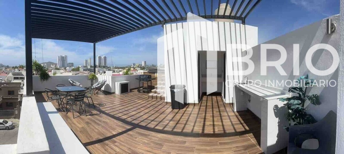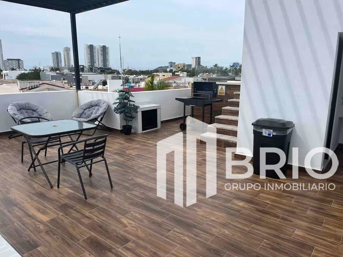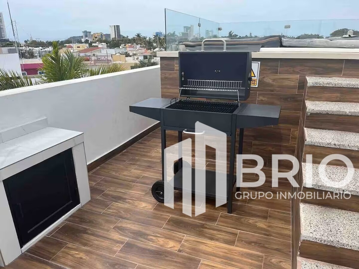 🌞 Roof con asador y área techada, perfecto para reuniones y disfrutar al aire libre.
