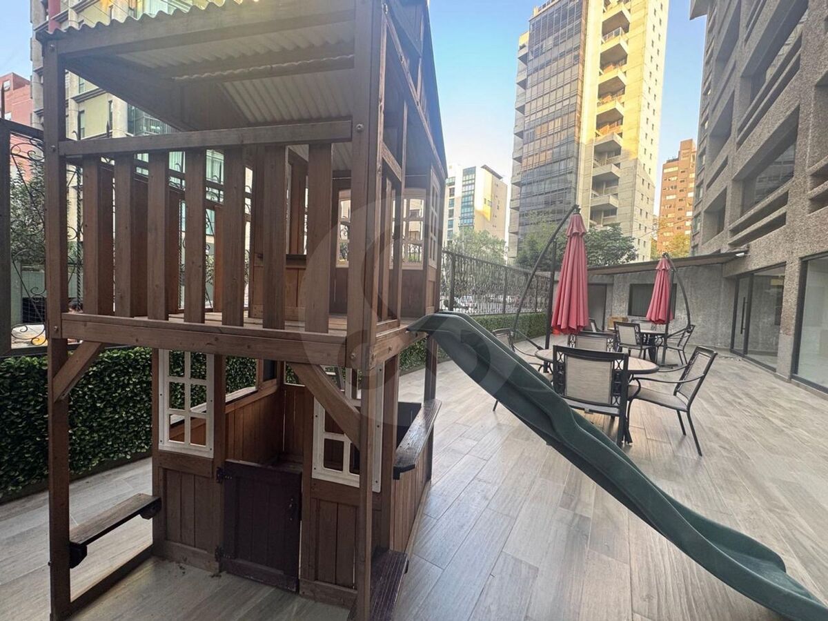 Entre sus amenidades destacan juegos infantiles, alberca, gimnasio, salón de eventos, cocina integral, cuarto de TV, cuarto de lavado, bodega, despensa, comedor, closets, cuarto de servicio, sala, recepción, garaje, ascensor de servicio, aislamiento acústico, acceso doble y buen acceso. Además, tiene un costo de mantenimiento de $6000 (incluye agua).