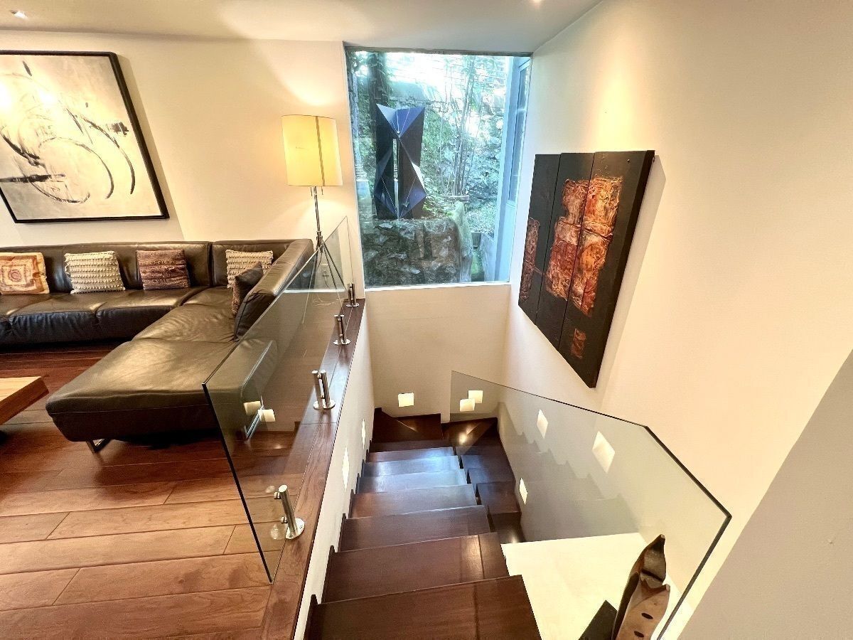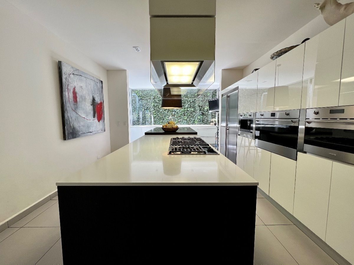 Access takes you across a bridge that crosses the condominium's garden, arriving at the residence through a private entrance that welcomes you with a triple-height foyer, marble floors, and engineered wood flooring.