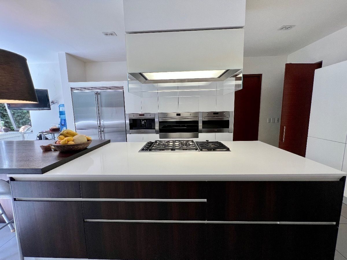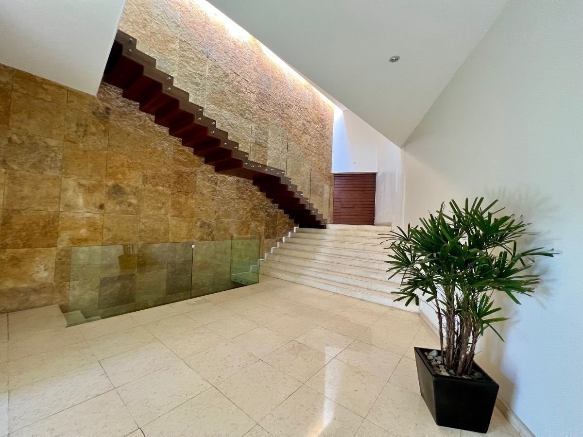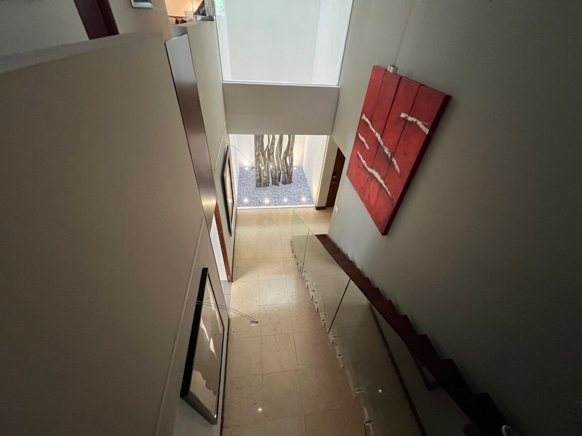 Su acceso te lleva por un puente que atraviesa el jardín del condominio, llegando a la residencia por una entrada privada que te recibe con un foyer de triple altura, pisos de mármol y pisos de duela de ingenieria.