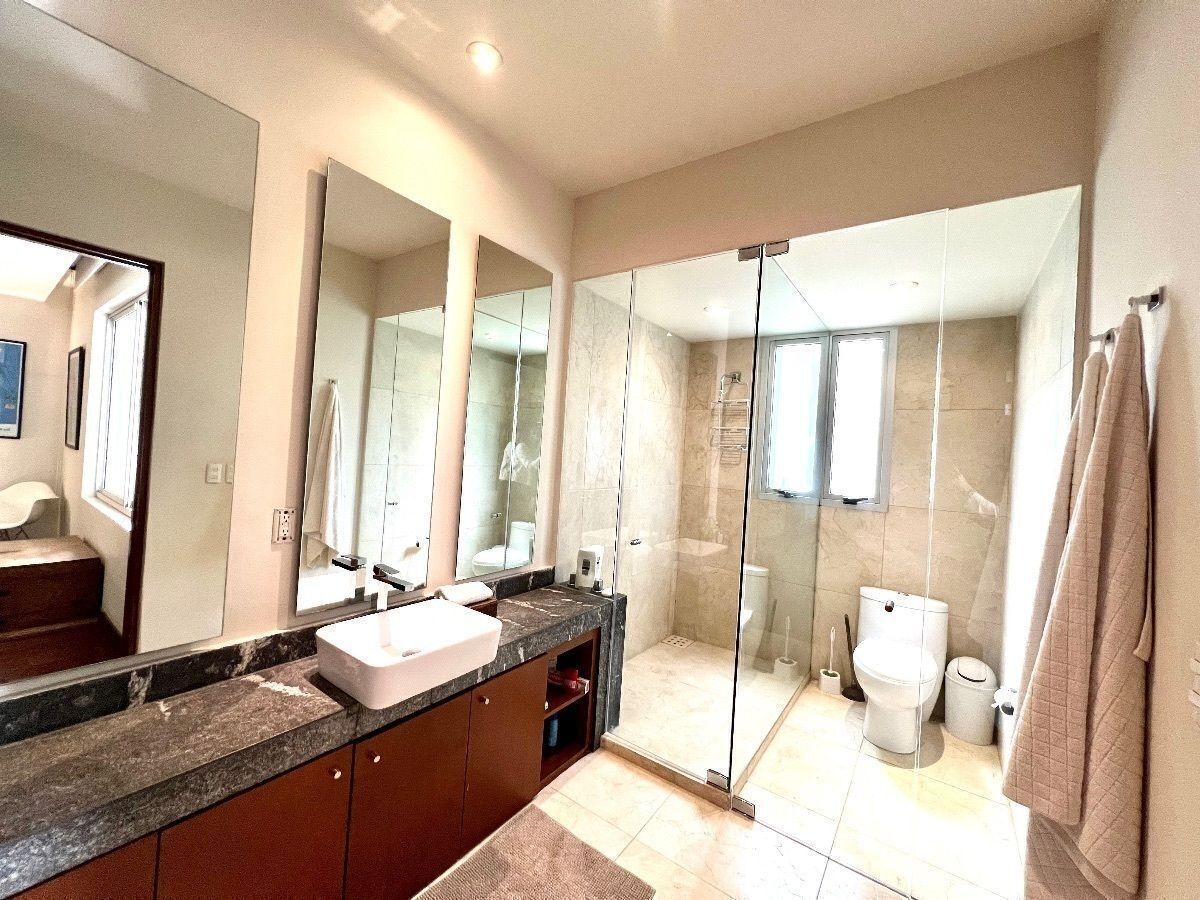 El departamento tiene cuarto de servicio con baño completo, cuarto de lavado y planchado. Sistema de calefacción central (loa radiante), paneles solares por contrato, 2 bodegas, sistema de luces y sistema de sonido.