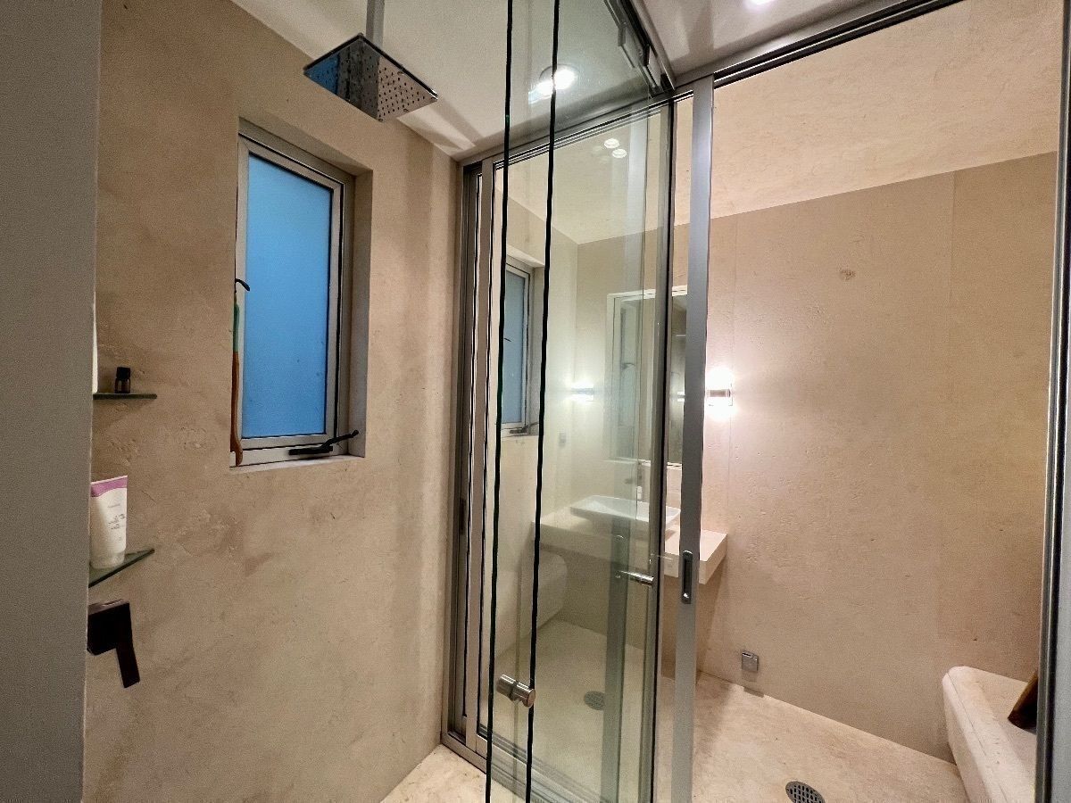 La recámara principal tiene vista al bosque y al jardín privado, una pequeña terraza, ventanales de piso a techo, walking closet y baño completo ensuite.