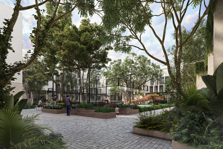 Este proyecto se divide en una zona privada, condominal y otra de libre acceso, que integra espacios comerciales y residenciales.