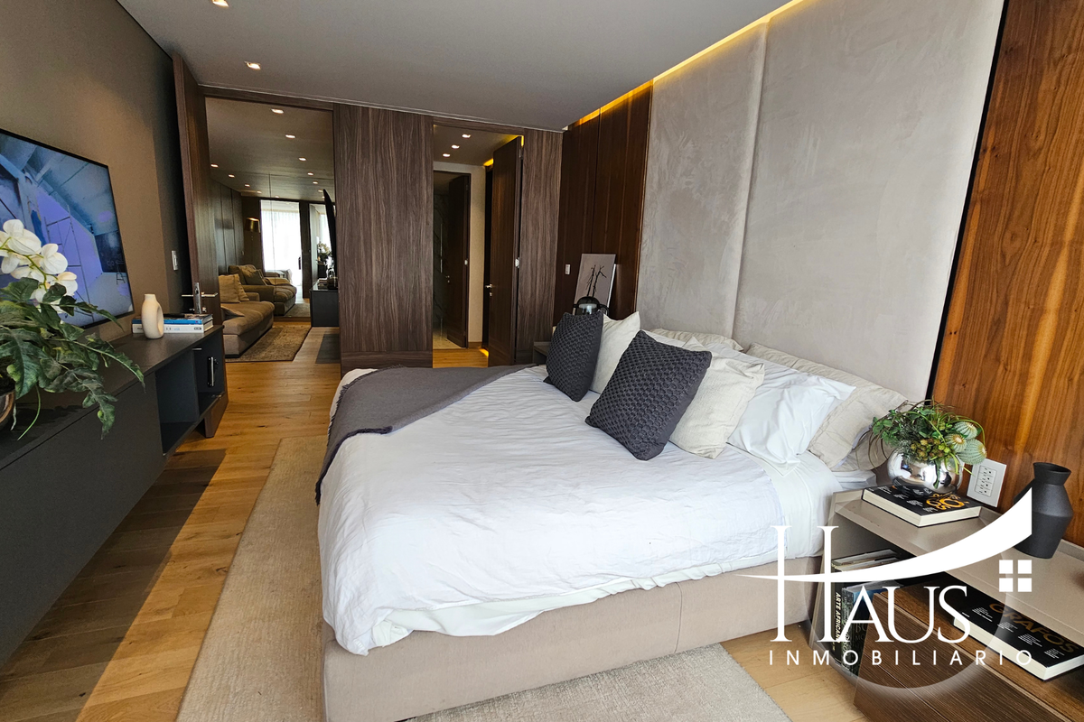 El pasillo te conduce hacia la recámara: la recámara principal tiene su baño privado y vestidor. Ventanas amplias permiten que la luz natural inunde los espacios durante todo el día, haciendo que cada rincón se sienta cálido y conectado con el exterior. Este modelo del departamento cuenta con su propia terraza que mide 73 m2. Lo cual agrega ese espacio increíble para recibir a tus visitas.
