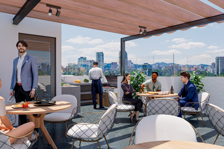 The building has security and a roof garden.