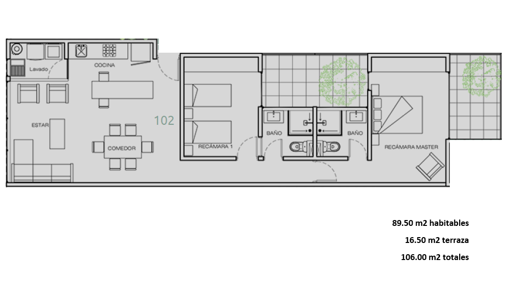 🛋️ 89.50 m² habitables + 16.50 m² de terrazas privadas