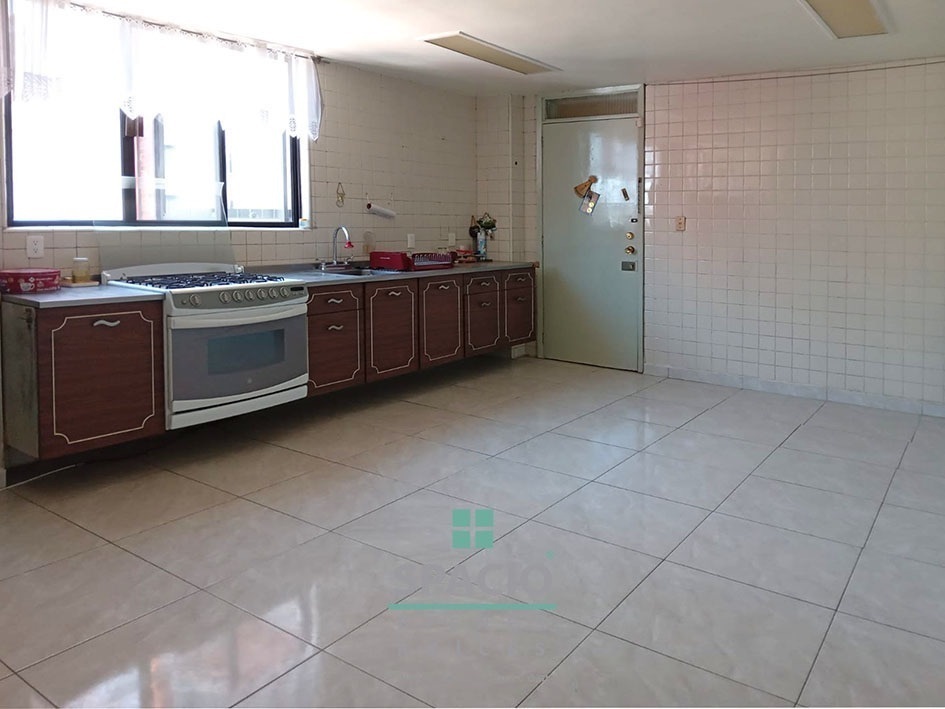 The kitchen has independent access via the service elevator, and its dimensions allow for a breakfast nook for 6 people, a large refrigerator, a pantry with great capacity, and other furniture. There is also access to the laundry area and the service area, which has a full bathroom.