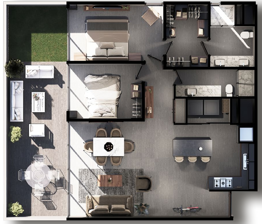 Los acabados incluyen pisos de porcelanato y canceles de baño en cristal templado. El desarrollo ofrece amenidades como recepción, seguridad 24/7, coworking, terraza con asadores, gimnasio y elevador. Ubicado cerca de servicios esenciales como tiendas, supermercados, escuelas, universidades, bancos y restaurantes. Excelente conectividad: a 8 min de La Minerva, 5 min de Plaza Midtown y Hospital San Javier