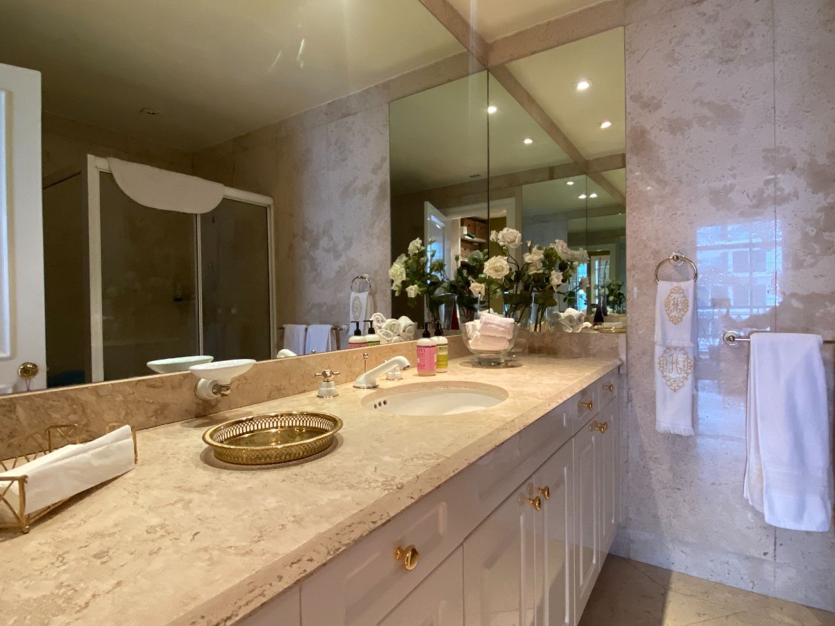 With elevator to the floor, lobby, very spacious living and dining room, guest bathroom, kitchen with breakfast area, laundry room, and complete service room with independent entrance. Family room and three bedrooms, all with walk-in closet and bathroom. 3 parking spaces and storage room. Excellent finishes, high ceilings, very bright, and all spaces are of very good size, in excellent condition. Common areas: pool, gym, pet area, and multipurpose room, visitor parking, and strict surveillance 24 hours.