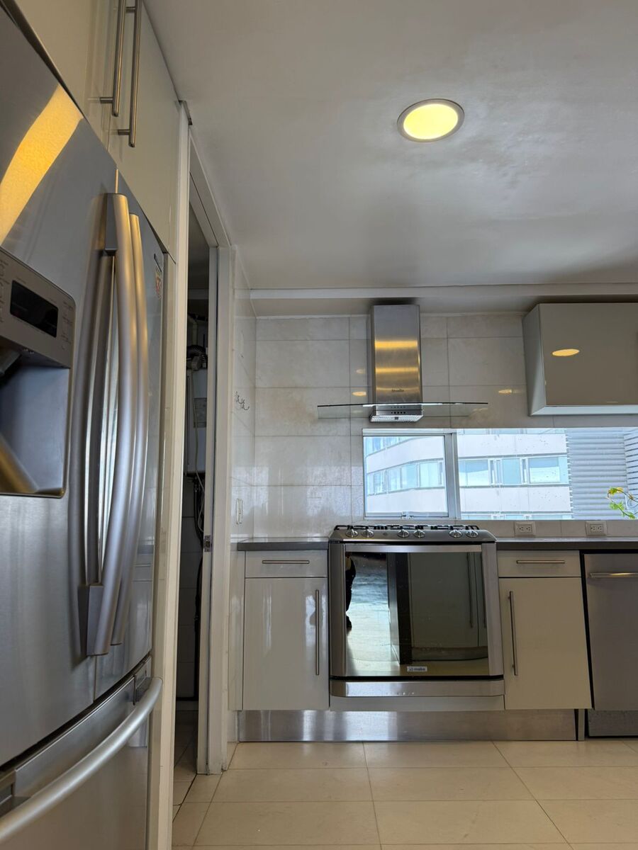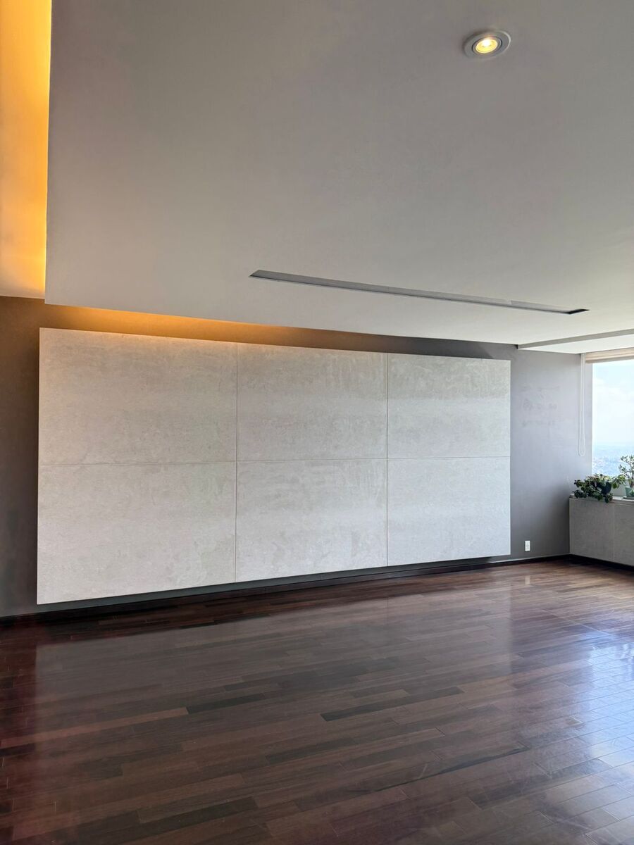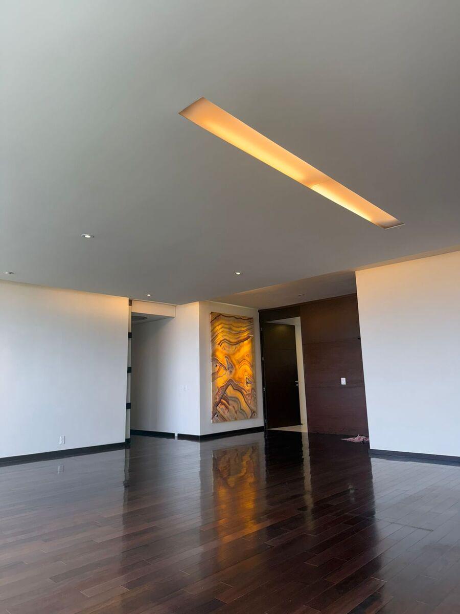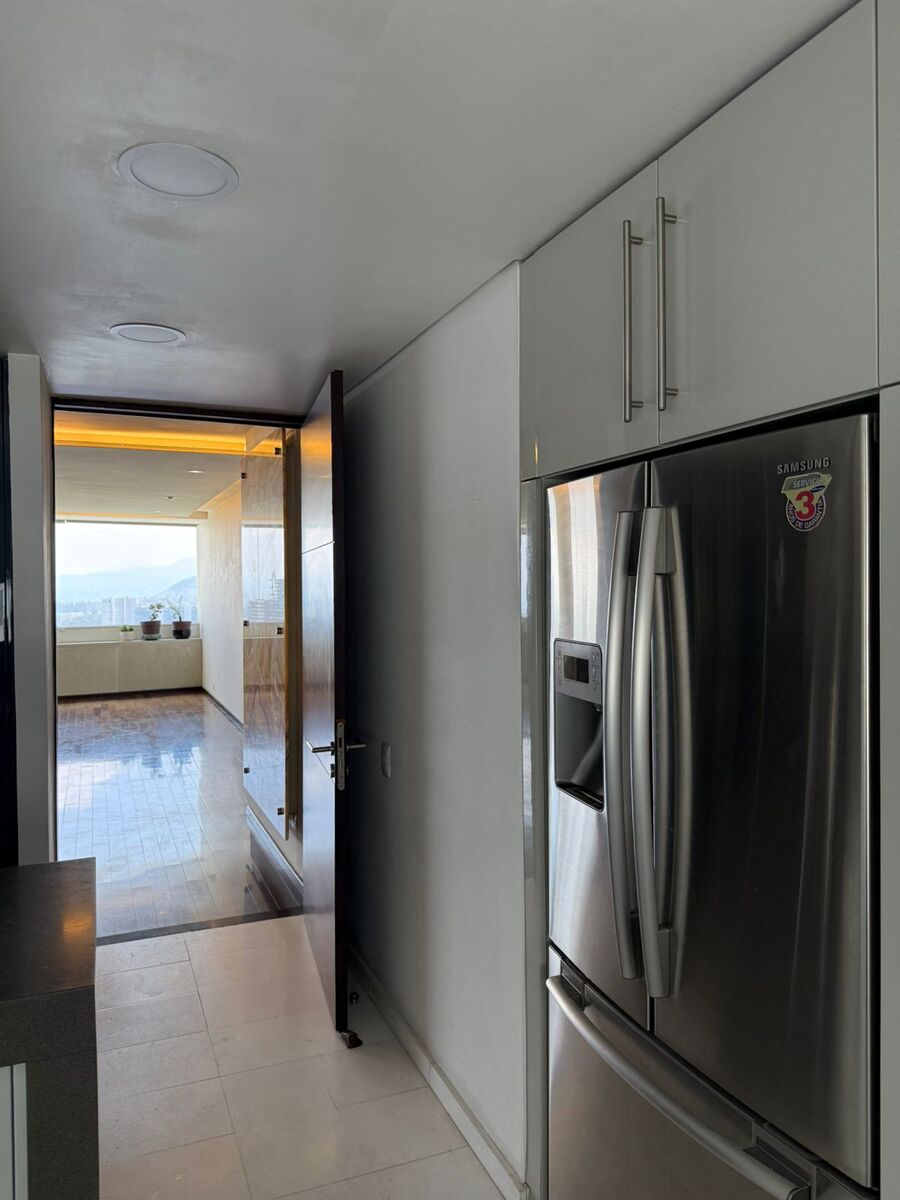 Departamento en venta en Avenida Santa Fe a un paso del Parque la Mexicana, Universidades, Corporativos y Centro Comercial Santa Fe. Sala comedor con una vista espectacular a los volcanes a Avenida Santa Fe, excelente temperatura! totalmente remodelado, luces indirectas. 2 recamaras cada una con baño completo y bañera, vestidor y closet muy grandes de madera, la tercera recámara actualmente esta como family el cual se puede cerrar muy fácil. Cocina integral equipada, área de lavado, cuarto de servicio con baño, 2 estacionamientos y bodega. Amenidades: alberca techada y climatizada, gimnasio, salón de eventos, ludoteca, jardín con asadores, cine, área de juegos infantiles, bussines center, sala de adultos, vigilancia 24 horas.