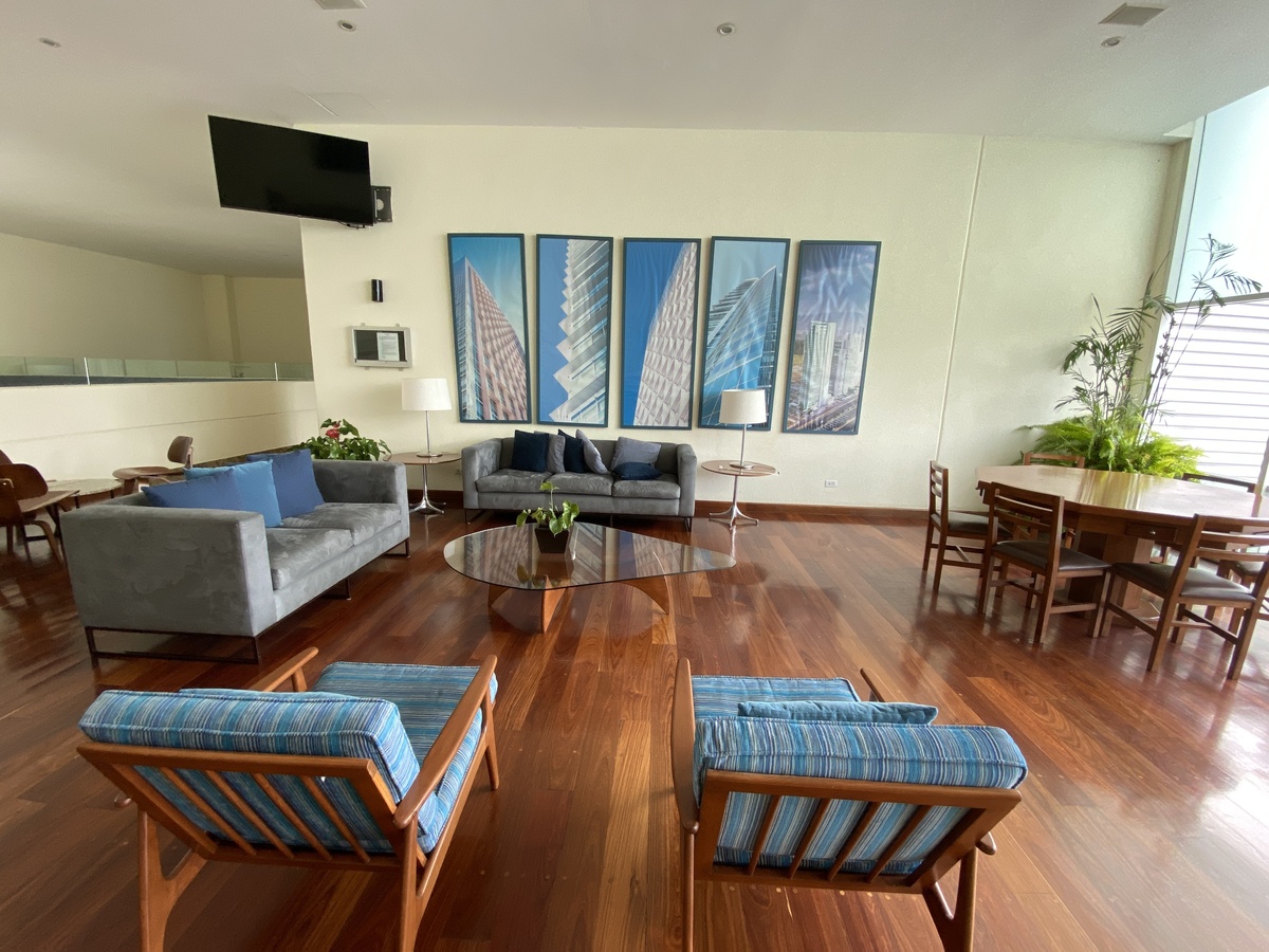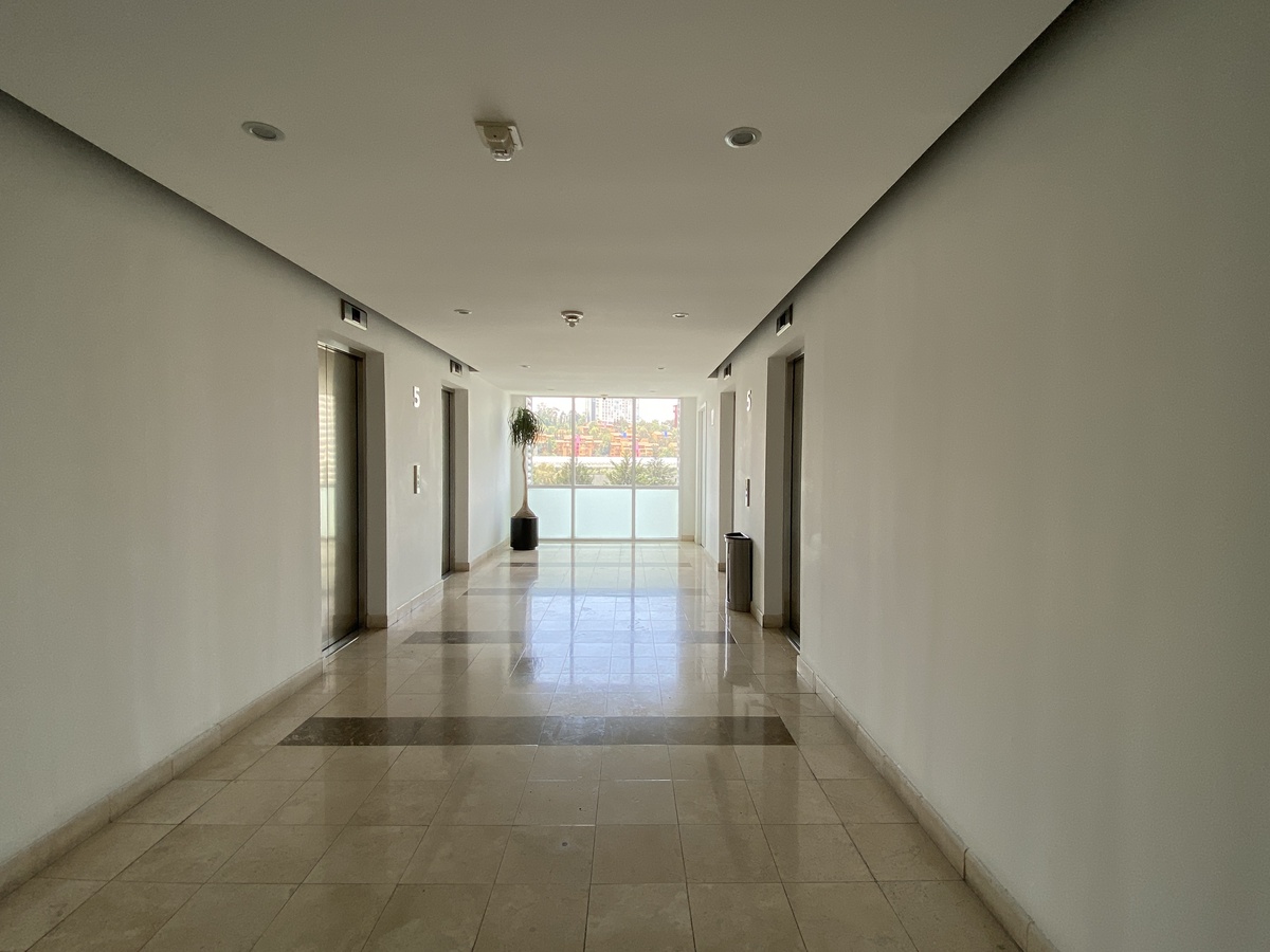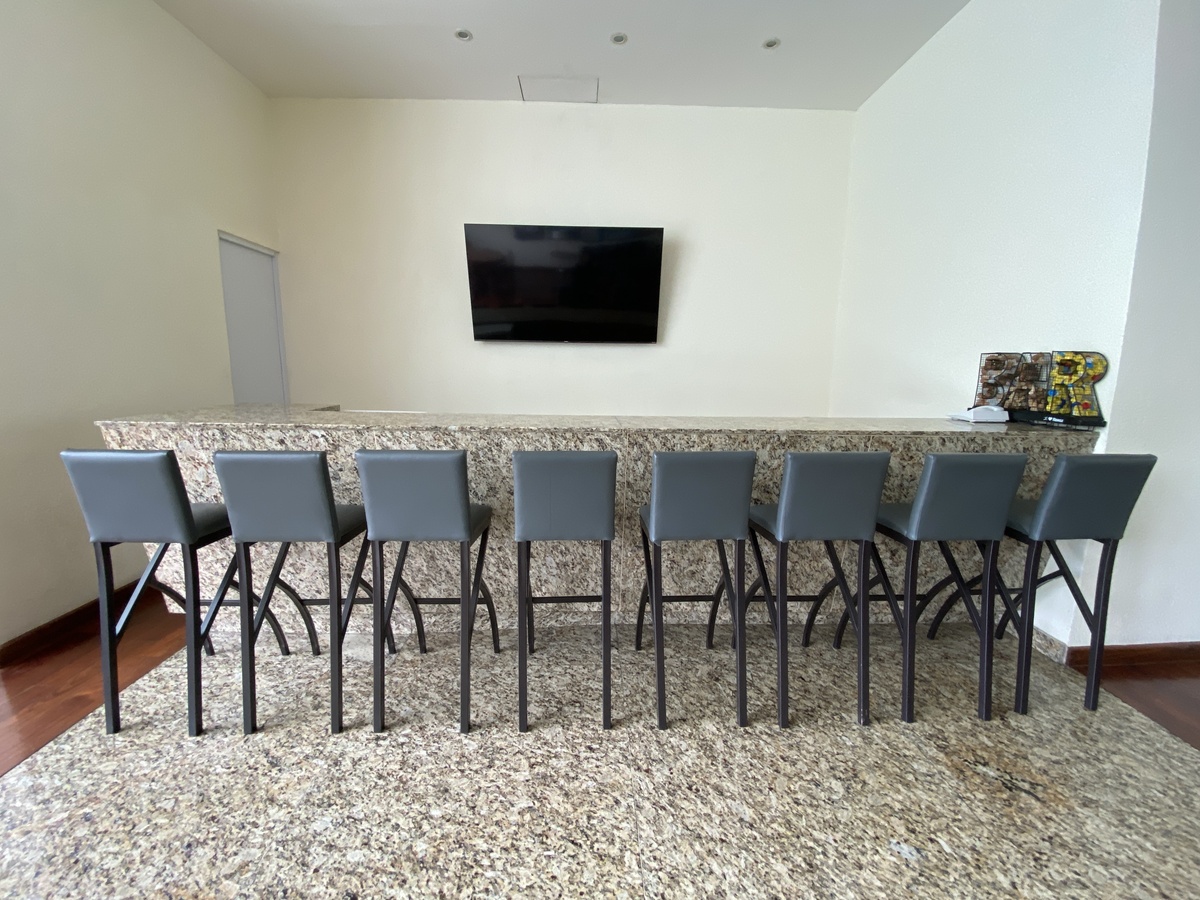 Recepción con vigilancia 24/7, valet parking, gimnasio, salón de eventos, bar, terraza y más.
