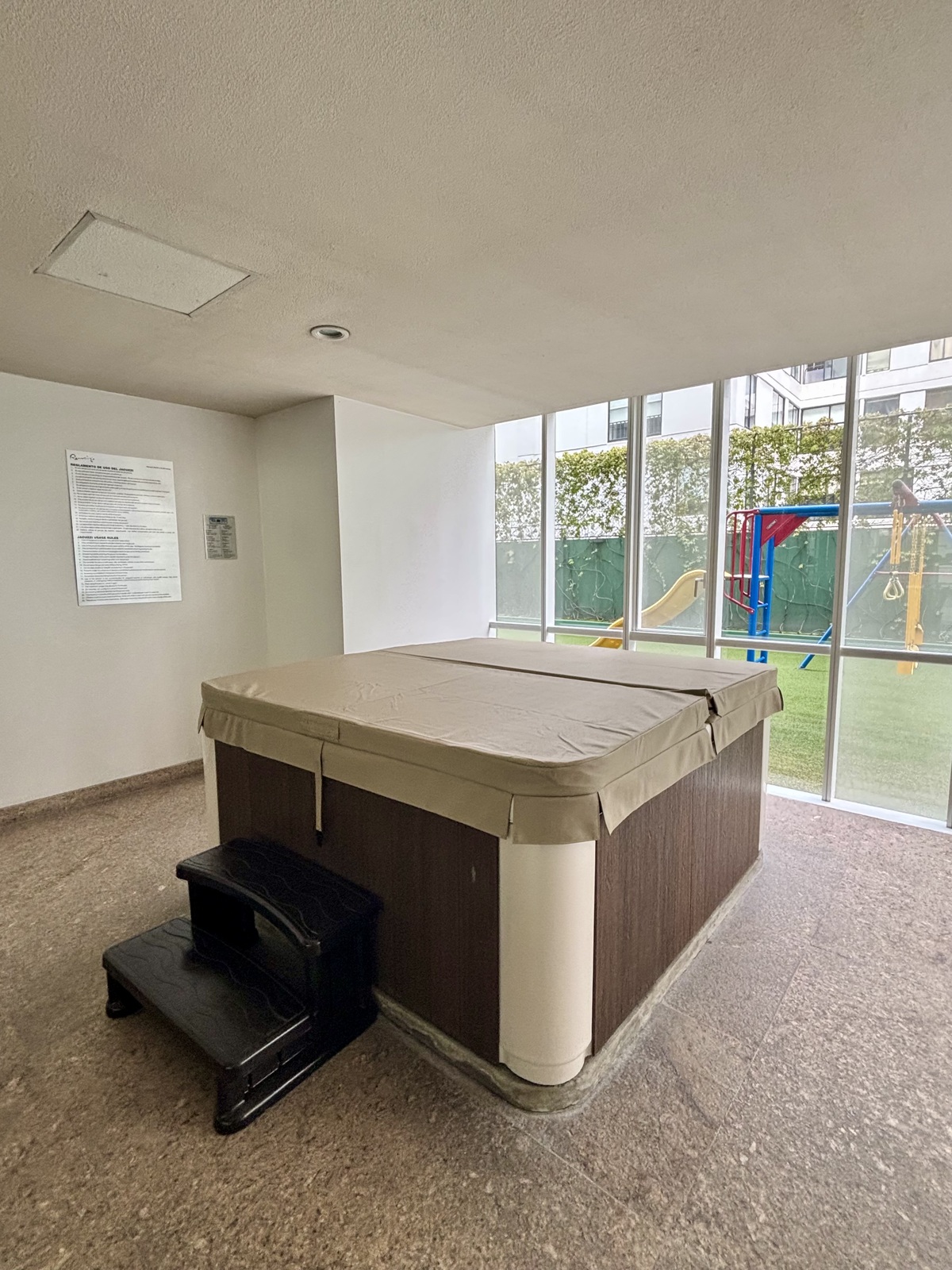 1. Pool, jacuzzi, steam room, showers, and changing rooms
