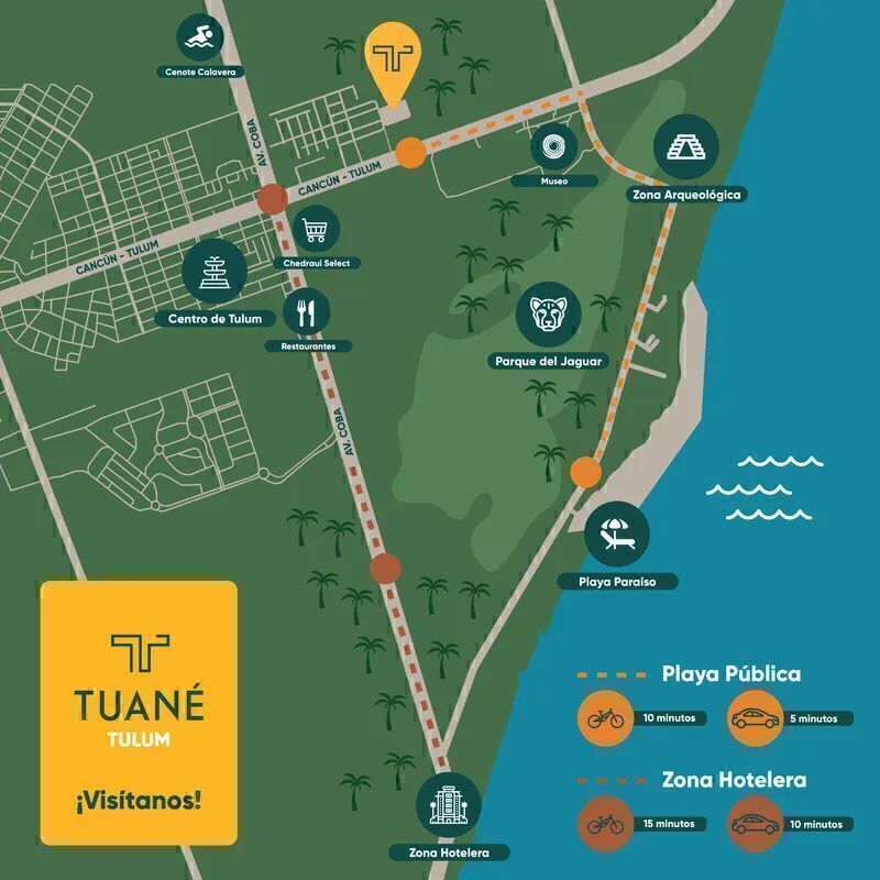Ubicado en una zona de alta plusvalía, céntrico, con fácil acceso a la playa, zonas comerciales y gastronómicas de Tulum.
