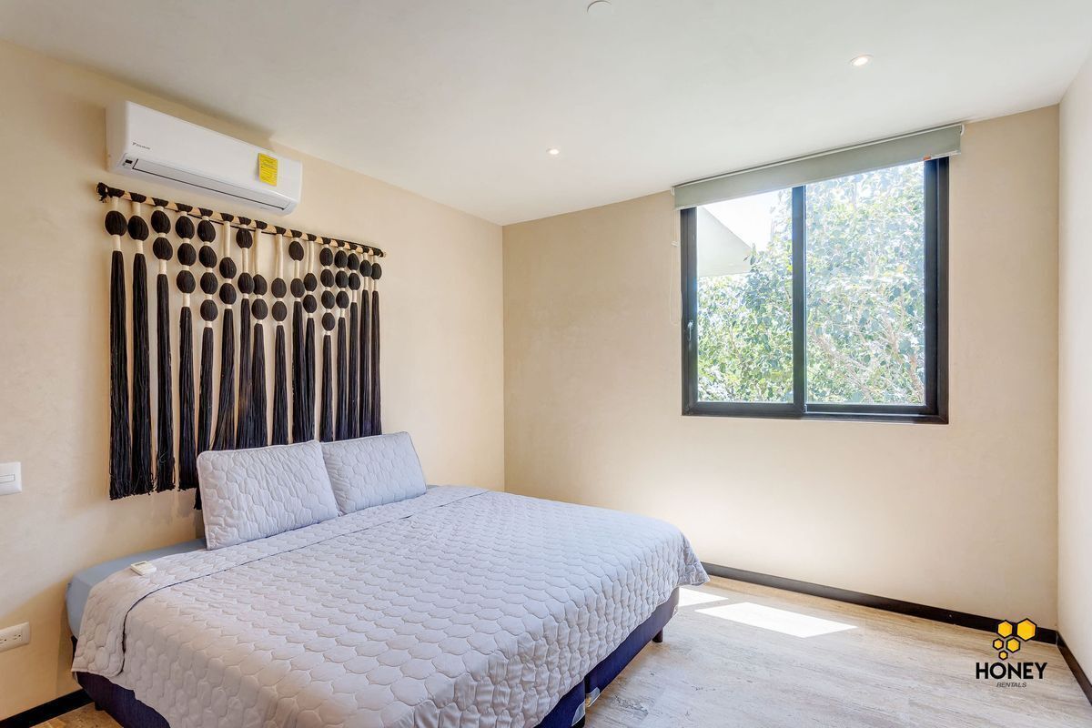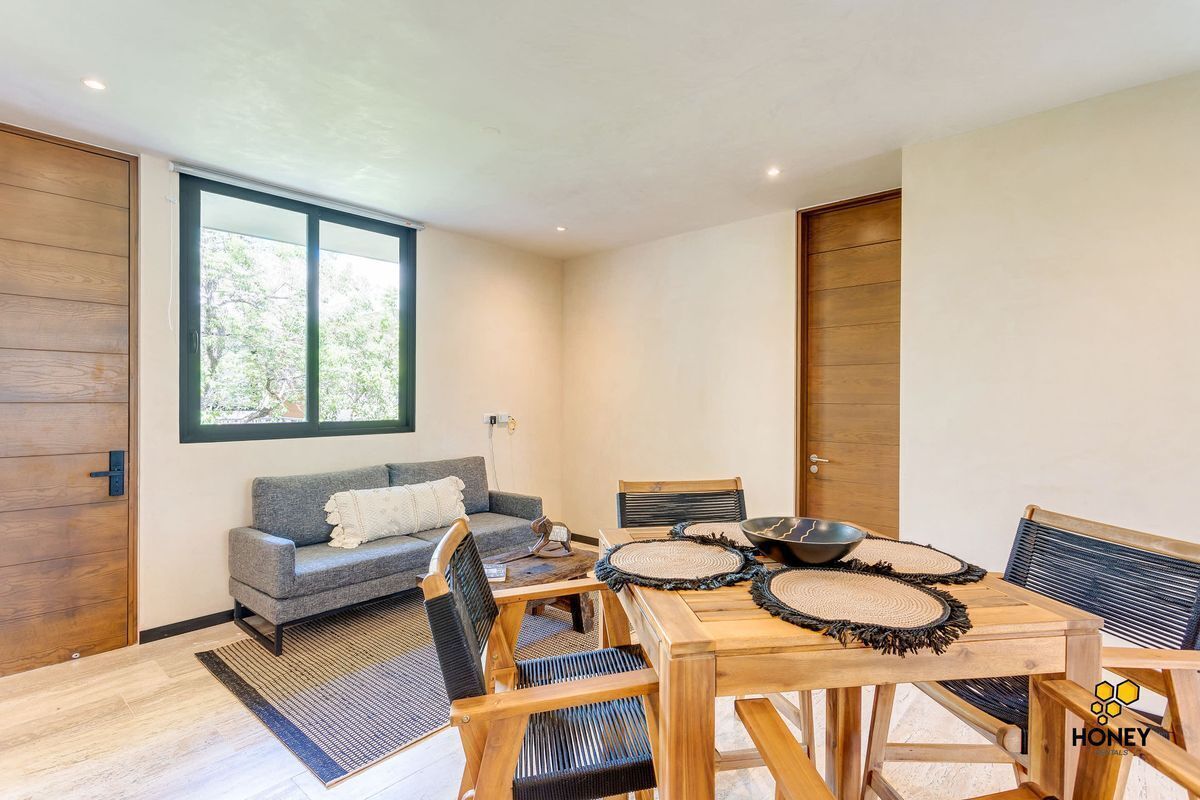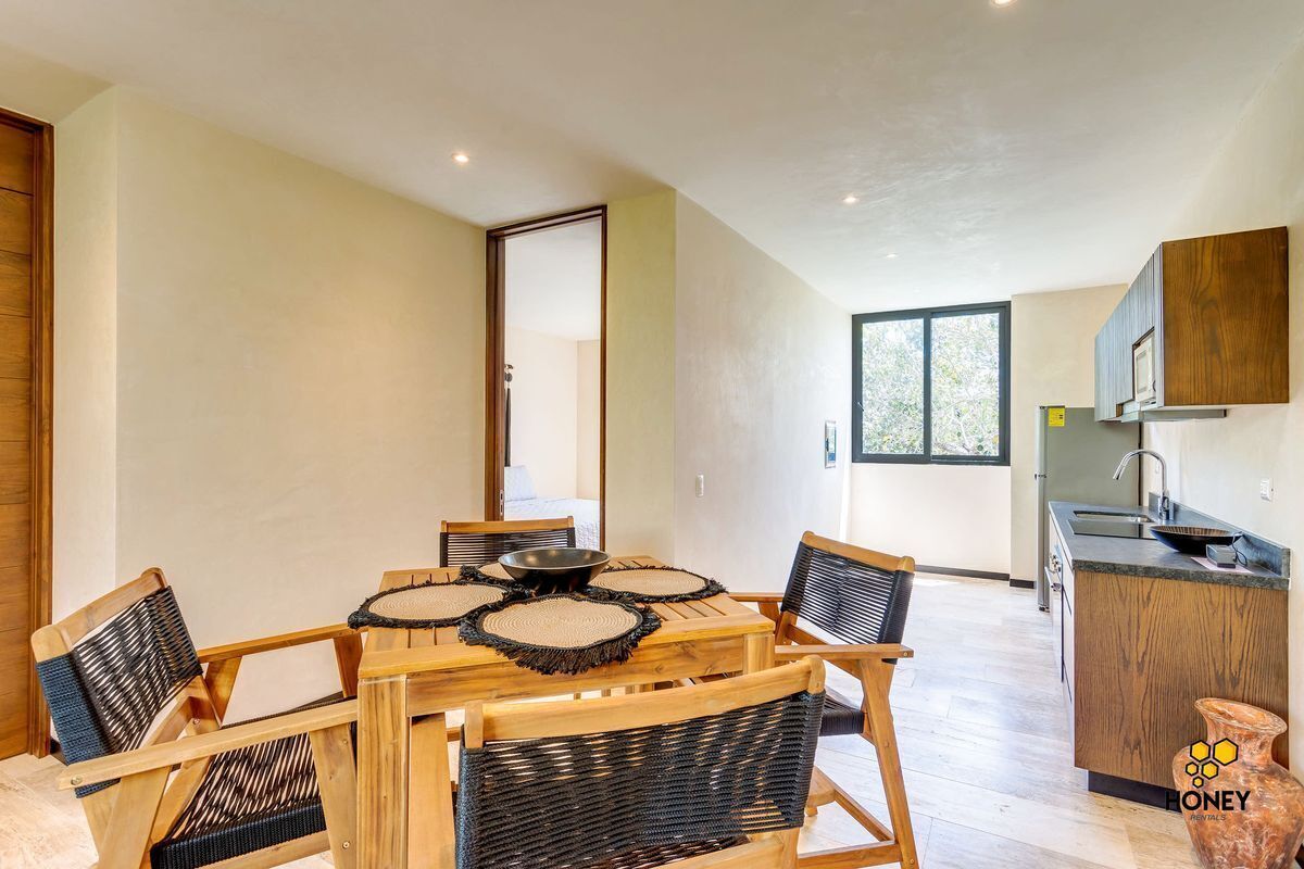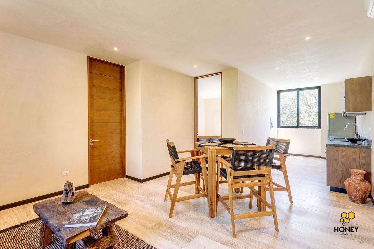 Let this unique and exotic development delight your senses at all times! - Within the quiet residential area called Aldea Zamá between the beach and the town - Ideal for a romantic and peaceful getaway in paradise mixed with elements of nature - An unforgettable place with a beautiful pool, jacuzzi, solarium, outdoor bar area, and lounge - A large rooftop terrace with more places to eat/rest outdoors and a modern gym - Warm and comfortable furniture, Wi-Fi, a fully equipped kitchen, and a parking space The space This 678 square feet|63 square meters condominium is located within the exclusive area of Aldea Zama, halfway between the beautiful beach of Tulum and its picturesque town, and features: - A warm and open living room with minimalist and naturally relaxing decor and a comfortable sofa to relax during downtime at home. - A dining table for 4 people for a formal dinner at home with good talks and laughter at mealtime. This also works as a laptop-friendly workspace! (if you must!) - The open kitchen is powerful! With everything needed to prepare healthy meals at home. It is equipped with refrigerator/freezer, oven, stove, microwave, coffee maker, and toaster! - 1 spacious and relaxing bedroom with air conditioning and a modern bathroom with a large standalone shower to comfortably accommodate 4 people as such: BEDROOM: 1 King bed with fantastic wardrobe space, reading chair, and safe LIVING AREA: 1 pull-out Queen sofa bed - There is 1 FREE PARKING SPACE available to you if you arrive by car. Please ask at reception upon arrival where your space will be. - Long stays are welcome. It can be a great place for the remote worker. Free Wi-Fi and laptop-friendly workspace at the dining table. This condominium is located within a charming community-style complex, surrounded by nature and offers excellent amenities such as a beautiful and spacious pool, jacuzzi, and sun terrace with chairs and loungers, and a bar with drink service by the pool. There is a modern gym with plenty of equipment and free weights and a large rooftop terrace with additional loungers, tables for dining or working outdoors, and plenty of space to stargaze or watch a sunset in the jungle!¡Deje que este desarrollo único y exótico deleite sus sentidos en todo momento! - Dentro de la tranquila zona residencial llamada Aldea Zamá entre la playa y el pueblo - Ideal para una escapada romántica y tranquila en el paraíso mezclado con elementos de la naturaleza - Un lugar imborrable con una hermosa piscina, jacuzzi, solárium, área de bar al aire libre y lounge - Una gran terraza en la azotea con más lugares para comer/descansar al aire libre y un moderno gimnasio - Muebles cálidos y cómodos, Wi-Fi, una cocina totalmente equipada y un lugar de estacionamiento El espacio Este condominio de 678 pies cuadrados|63 metros cuadrados está ubicado dentro de la exclusiva zona de Aldea Zama, a medio camino entre la hermosa playa de Tulum y su pintoresco pueblo, y cuenta con: - Una sala de estar cálida y abierta con una decoración minimalista y naturalmente relajante y un cómodo sofá para relajarse en los momentos de inactividad en casa. - Una mesa de comedor con capacidad para 4 personas para una cena formal en casa con buenas charlas y risas a la hora de comer. ¡Esto también funciona como un espacio de trabajo apto para portátiles! (¡si debes!) - ¡La cocina abierta es poderosa! Con todo lo necesario para preparar comidas saludables en casa. ¡Está equipado con refrigerador/congelador, horno, estufa, microondas, cafetera y tostadora! - 1 dormitorio espacioso y relajante con aire acondicionado y un baño moderno con una amplia ducha independiente para acomodar a 4 personas con comodidad como tal: DORMITORIO: 1 cama King con fantástico espacio de guardarropas, silla de lectura y caja de seguridad ÁREA DE ESTAR: 1 sofá cama Queen extraíble - Hay 1 PLAZA DE APARCAMIENTO GRATUITA a tu disposición si llegas en coche. Por favor, pregunte en recepción a su llegada dónde estará su espacio. - Las estancias de larga duración son bienvenidas. Puede ser un gran lugar para el trabajador remoto. Wi-Fi gratuito y espacio de trabajo apto para portátiles en la mesa de comedor. Este condominio se encuentra dentro de un encantador complejo estilo comunidad, rodeado de naturaleza y ofrece excelentes comodidades como una hermosa y amplia piscina, jacuzzi y terraza para tomar el sol con sillas y camastros, y un bar con servicio de bebidas junto a la piscina. Hay un gimnasio moderno con muchos equipos y pesas libres y una gran terraza en la azotea con tumbonas adicionales, mesas para cenar o trabajar al aire libre, ¡y mucho espacio para observar las estrellas o ver una puesta de sol en la jungla!
