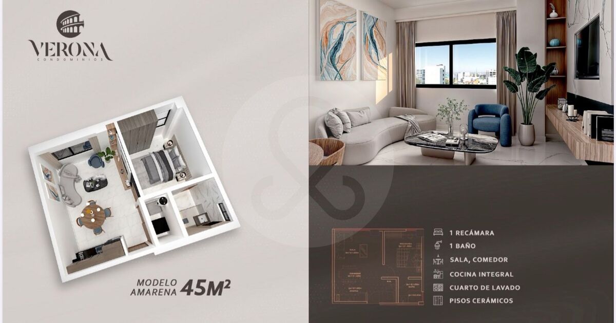 Esta propiedad en venta se encuentra en la ciudad de Mazatlán, en el estado de Sinaloa. Ubicada en la colonia Palos Prietos en el edificio Verona , cuenta con una suite, un baño completo y un espacio de estacionamiento. Con una superficie total de 45m², esta propiedad ofrece una cocina integral, área de relax, aire acondicionado y elevador. Además cuenta con servicios como asador, alberca y área recreativa. Se encuentra en etapa inicial de construcción. Su dirección es Flamingos 213, en la calle Flamingos 200, con código postal 82010. Ideal para quienes buscan comodidad y entretenimiento en un solo lugar.