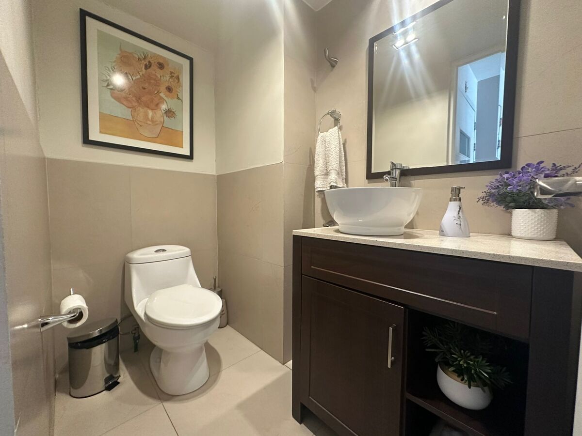 3 bedrooms, the main one with a full bathroom and walk-in closet, the secondary bedrooms share a bathroom. Spacious living and dining room with a guest bathroom, service area, kitchen.