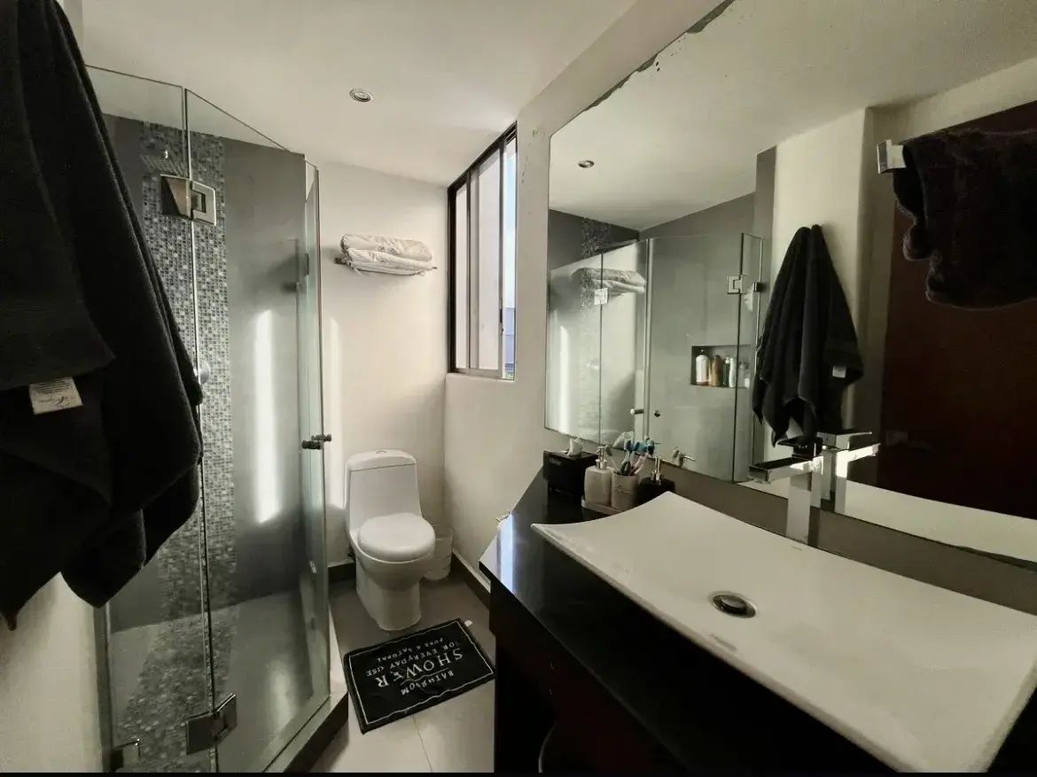 con un a superficie de 130m2 muy iluminado con una vista bonita con una estancia amplia, baño de visitas, cocina integral con barra de granito, 3 recamaras, la principal con baño y vestidor, las recamaras secundarias con closet y comparten baño, área de lavador, cuarto con baño de servicio y 2 lugares de estacionamiento!