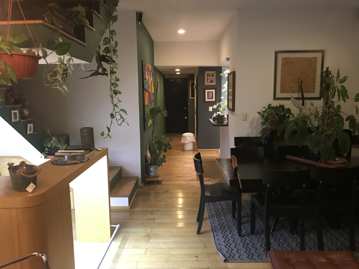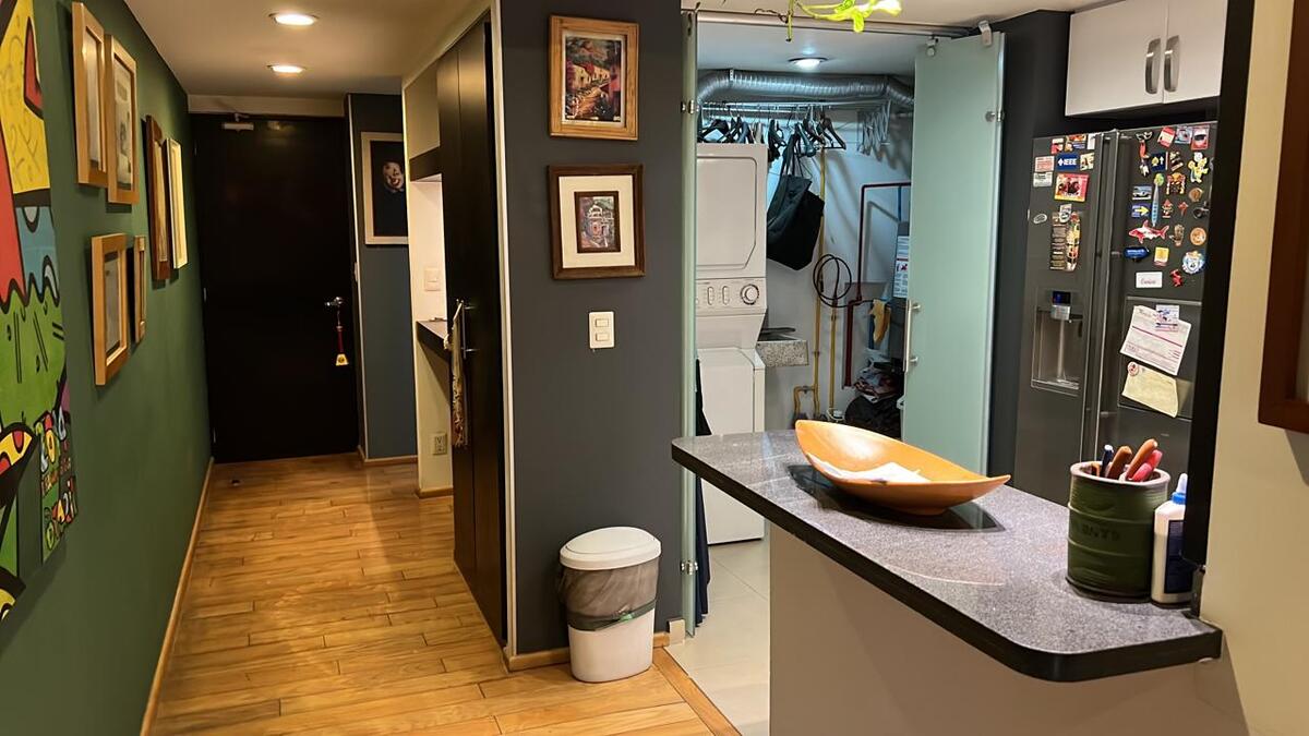 Hermoso departamento con medio baño, alacena, cocina y cuarto de lavado, espacio de comedor y sala, bar bajo escalera. En segundo piso esta una recamara secundaria con closet y un family room que comparten baño completo, recamara principal con baño completo y vestidor, el departamento cuenta con una bodega en el sótano 2 y los lugares de estacionamiento son 2 paralelos, el departamento cuenta con vista a los volcanes.