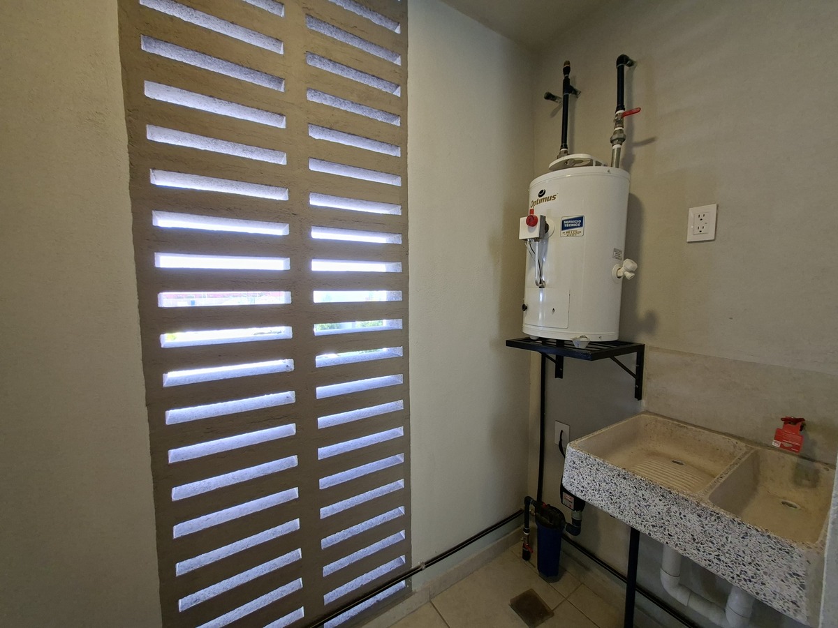 - Covered laundry area.