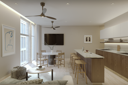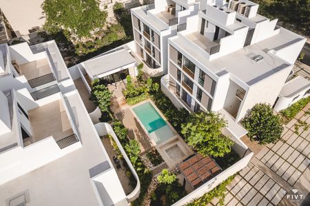 Este proyecto se divide en una zona privada condominal y otra de libre acceso, que integra tanto espacios comerciales como residenciales.